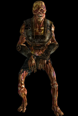 Tougher than almost any other ghouls, reavers are one of the most formidable enemies in the Wasteland. Reavers have the unique ability to throw pieces of the own body at the target. These chunks, thrown with deadly accuracy, explode like a grenade and can easily cripple limbs. Reavers seem highly perceptive and can detect their foes much easier than standard Feral Ghouls.