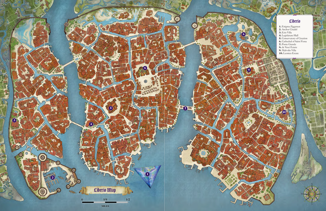 Previously, our heroes finished the day after discovering the location of Queen Lenore and negotiating a temporary alliance with the Knights of the Silver Order to assault Temple Gate in conjunction with the Hooded Lanterns. Before this can happen, they must acquire a foothold within the city by displacing the wicked harpies that roost in the Cosmological Clocktower. But first, they must follow up with Oscar Yoren, the Malfeasant Wizard who requested they bring back Eldritch Lilies for his alchemical studies of delerium.