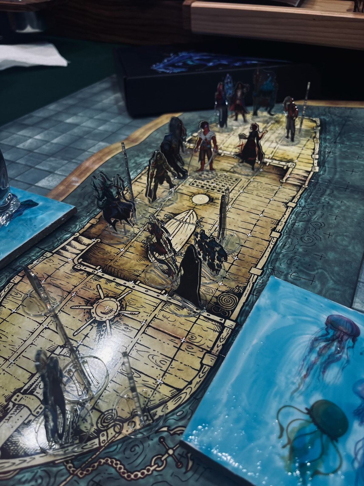 With almost no fanfare, merely a few councillors, like Primewater and Fireborn, the Try-hard Misfits leave the Saltmarsh docks behind as their ship's sails billow with magic and wind heading south by southwest. As the ship rounds the horn of Saltmarsh, a dozen varied sahuagin leap onto deck with the majority at midships. The party reacts instantly to the surprise attack with Jane squaring against the big bruisers while the deckhands, Jimmie Jr, and O'Donahue due their best to just fend off the beasts. Sahuagin surrond Capt O'Donahue as he barely deflects their blows, while several fall beneath the pressure of Nar's bow. Jane roars a challenge followed by a mighty strike gaining the attention of the Blademaster. Kyra launches herself aloft and summons her eldritch powers tolling the sahuagin below. O'Donahue reels from the multiple attacks with Jimmie Jr coming to his aid. It looks like one more blow might take him down, when arcane darts fly from Kyra's fingertips slaying the sahuagin causing its spear to clatter to the deck midthrust narrowly missing O'Donahue. Meanwhile, the large Blademaster sahuagin slashes at Jane in a wild flurry of moves, but Jane dances between the thrusts until stumbling on a loose plank and taking a wallop as she cries out in pain. On the far side, Nar sinks an arrow deep into a champions thigh as she screams, "I'll chew your leg as sushi!" Slowly the tide turns as the sahuagin lie bloody and limp on the deck with Adlia raising her little bell and chiming it as she points toward the Blademaster. It grabs its chest as it falls backward dead. The reef sharks slowly drift aimlessly away as the party gathers itself with some quick healing.Rewards Granted
