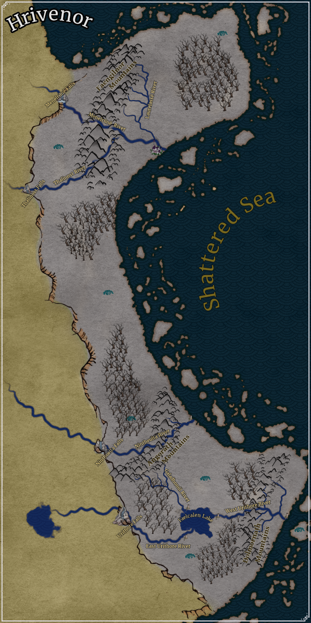 The western lands of Velthanor were all but destroyed, sunk into the sea, devastated by terrible dark magics. The soil was despoiled of all life, the trees now skeletal remains of the regions once former beauty. Many of the souls lost here now find themselves trapped in perpetual torment and the bodies of the dead rise again to roam the blighted landscape seeking to devour all life. It is within these shattered lands that the Elves of the winter court seek to rebuild their once glorious civilization.