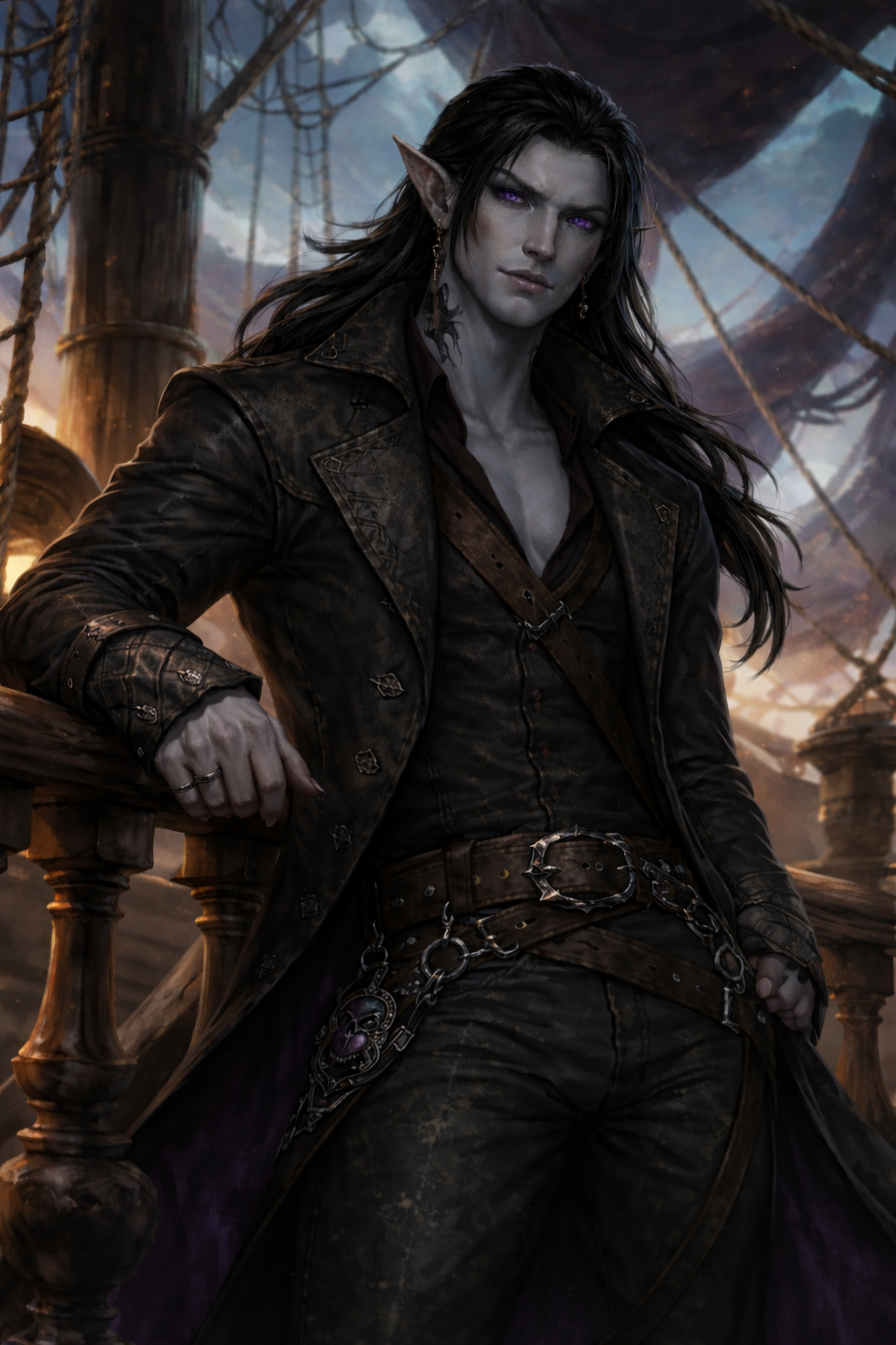 He reinvented himself as a pirate and rose to become a captain, embracing a life of danger, freedom, and theatrical flair. Stylish heists and impossible escapes followed wherever he sailed, and hearts were broken across a dozen harbors along the way. His name spread through whispered rumors and dockside tales, growing with every telling. Now he commands his own ship and a crew of daring misfits, drawn to him by charm, talent, and the promise of trouble.