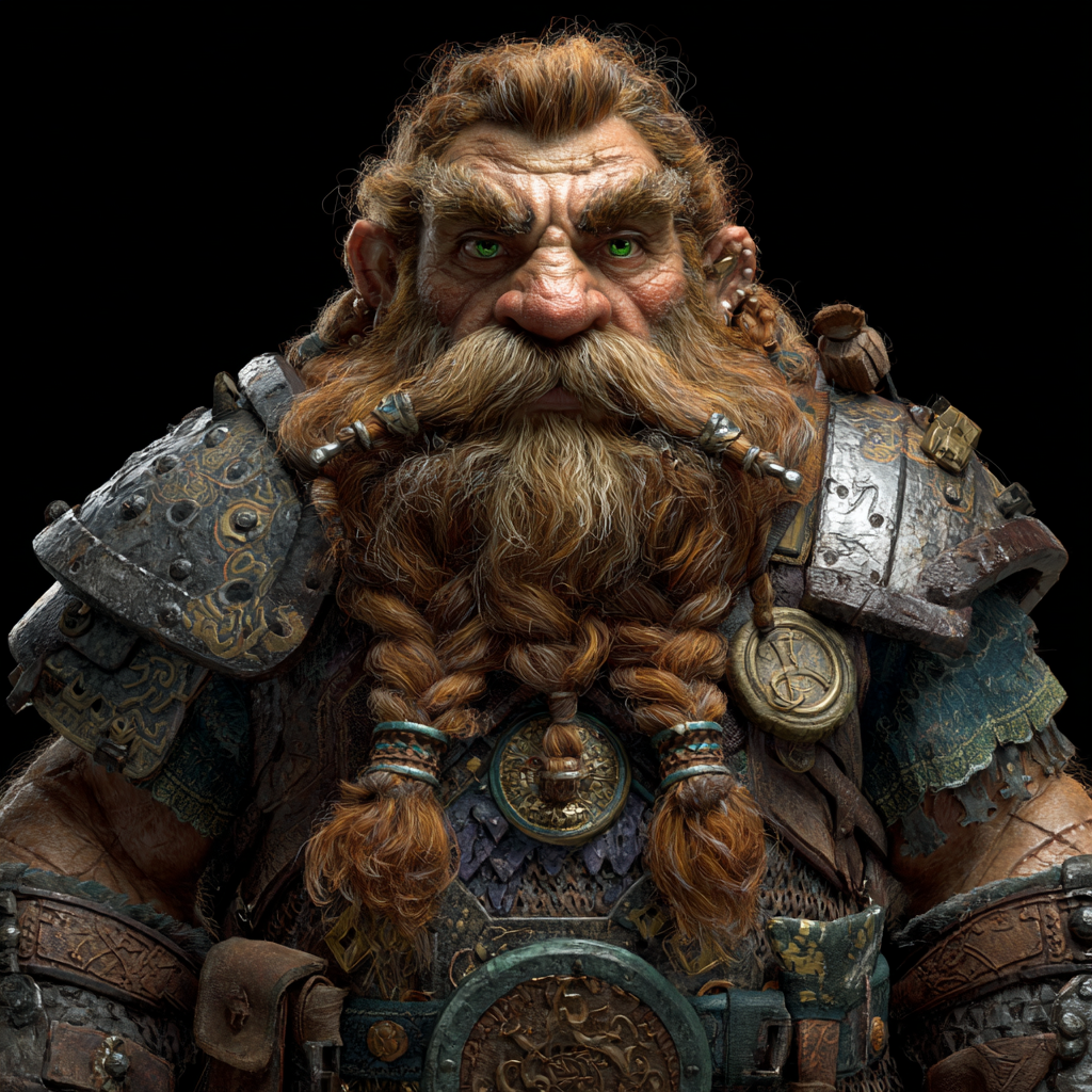 Baelor Ironhammer stands as a living monument to dwarven craftsmanship and resilience. At 347 years old, he has weathered more storms than most mountains, his steel-gray beard now streaked with silver and his hands bearing the honored scars of a lifetime at the forge. Despite losing his left eye during the orcish assault, his remaining eye burns with undiminished passion for the smithing arts.