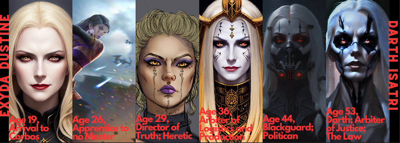 Born into the Sith Empire during a time of fracturing loyalties, Isatri Velcrin was once a gifted acolyte trained within the heart of Imperial academia. For decades, she served not as a warlord but as a patient manipulator — siphoning resources, personnel, and secrets from within. Her exodus from the Empire was not marked by open rebellion, but by a forty-year vanishing that seeded the birth of the Sovereignty. In the Unknown Regions, she carved out a new power — one not ruled by doctrine, but by obedience, vision, and perfected control.