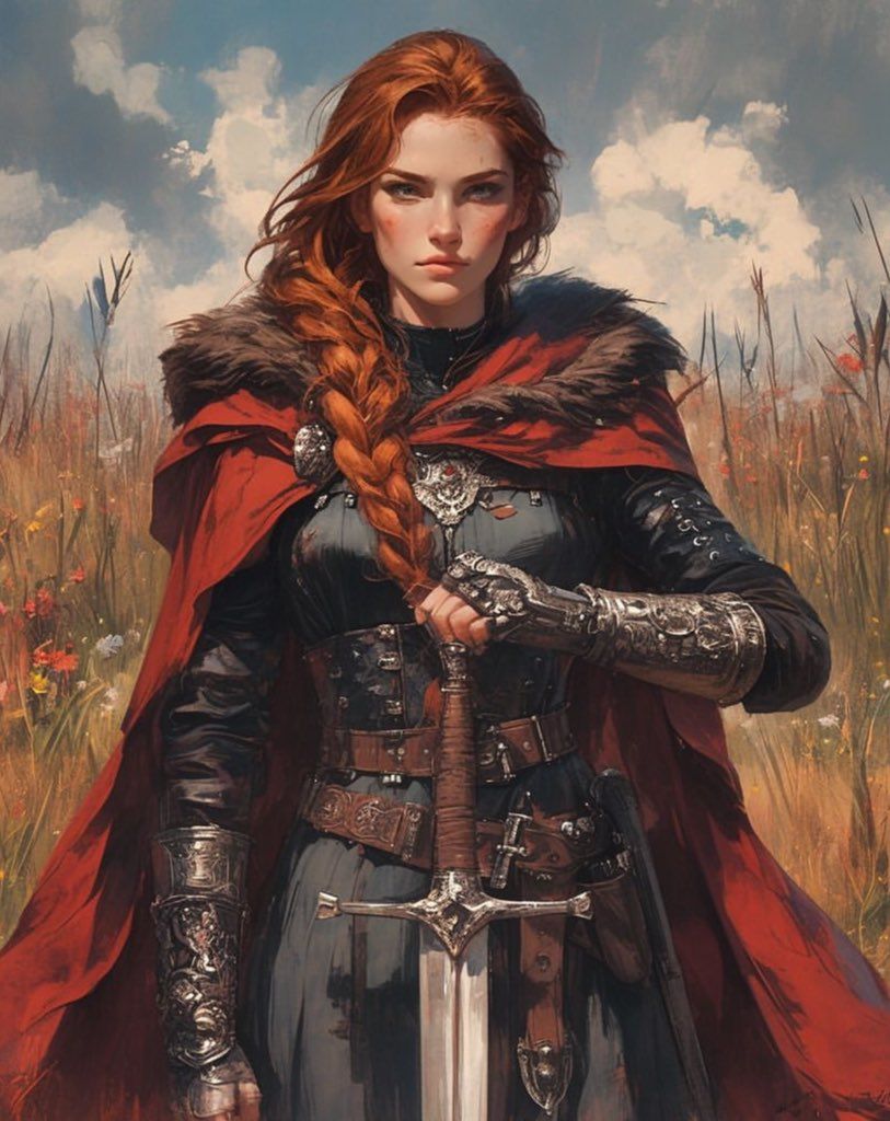 Les traits délicats de Laura portent l’empreinte d’une bonté naturelle, mais son maintien droit et assuré, ainsi que l’arsenal qu’elle arbore fièrement — lance, hallebarde et bouclier — ne laissent aucun doute sur sa vocation martiale. Spécialiste des armes d’hast, elle porte une armure finement ouvragée, ornée d’une fleur stylisée : un symbole qui, pour les connaisseurs, évoque sans équivoque le Serment des Anciens prêté par les paladins.