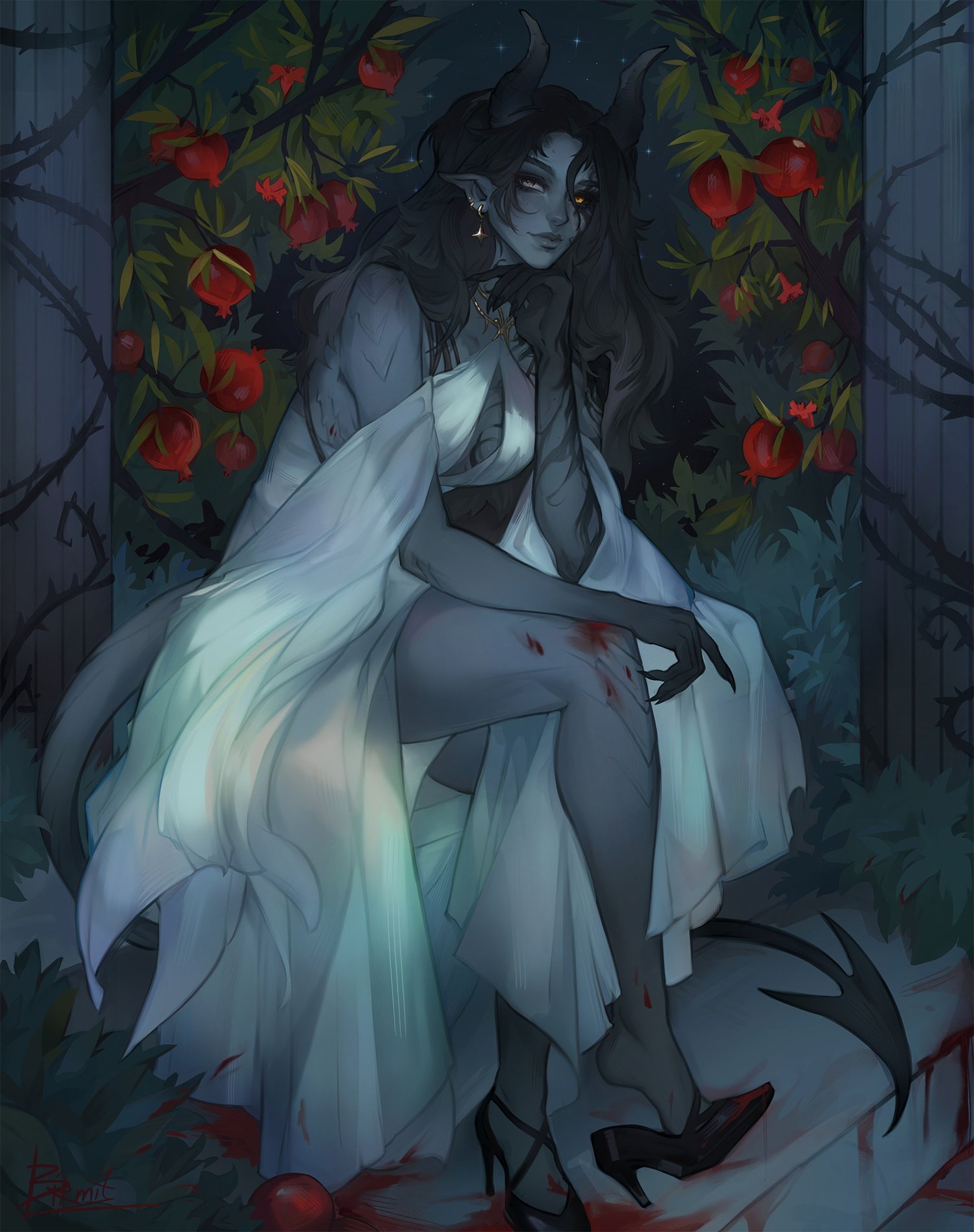 Her Horns have almost the same color as her hair, but get lighter at the tips.