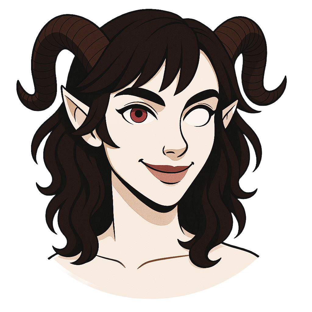 Her most profitable disguise? A fortune teller. Equal parts perceptive and performative, Magpie turned the art of deception into a lucrative career. Whether through intuition, subtle cues, or genuine infernal insight, she tells people exactly what they want to hear, all while quietly rifling through their coin purses. She feels no guilt. In fact, she finds it thrilling. If you’re foolish enough to trust a stranger draped in velvet and veils, well… that’s your mistake, not hers.