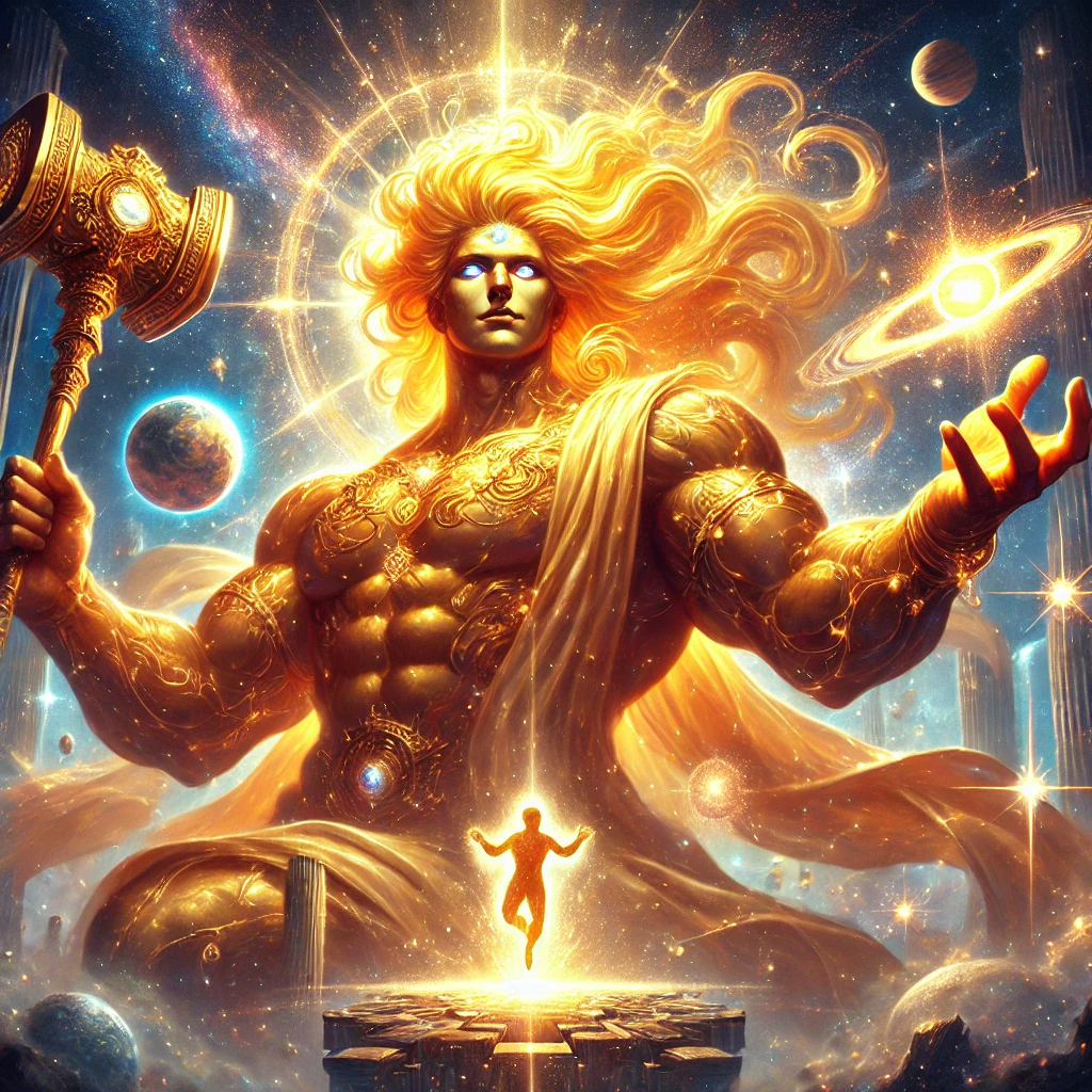 @ Astralor's hair, like liquid gold, flows down his back, merging into a robe made of shimmering stardust and cosmic energy. This robe is not merely a garment but a manifestation of the very forces he commands—the primordial energies from which he forges stars, planets, and even the fates of gods and mortals alike. In his right hand, Astralor wields a massive hammer, crackling with raw, elemental energy. This hammer is a symbol of his power to forge reality itself, shaping the universe according to his will. In his left hand, he holds the potential of creation—a soft, emanating light that represents the endless possibilities that lie within the void, waiting to be brought into existence by his hand. Astralor resides in the Celestial Forge, a place beyond time and space where stars, planets, and galaxies swirl in a never-ending dance of creation. Here, he tirelessly works to bring his vision of perfection into reality, hammering out the flaws in the universe and shaping existence to align with his ideals. However, Astralor's quest for perfection is not without its challenges. His sister, Aeloria , represents the subtle forces of Fate, constantly weaving new patterns and outcomes that can derail even Astralor's most meticulous plans. Despite their differences, the two siblings work in a delicate balance, their opposing forces driving the evolution of the cosmos in ways neither could achieve alone.