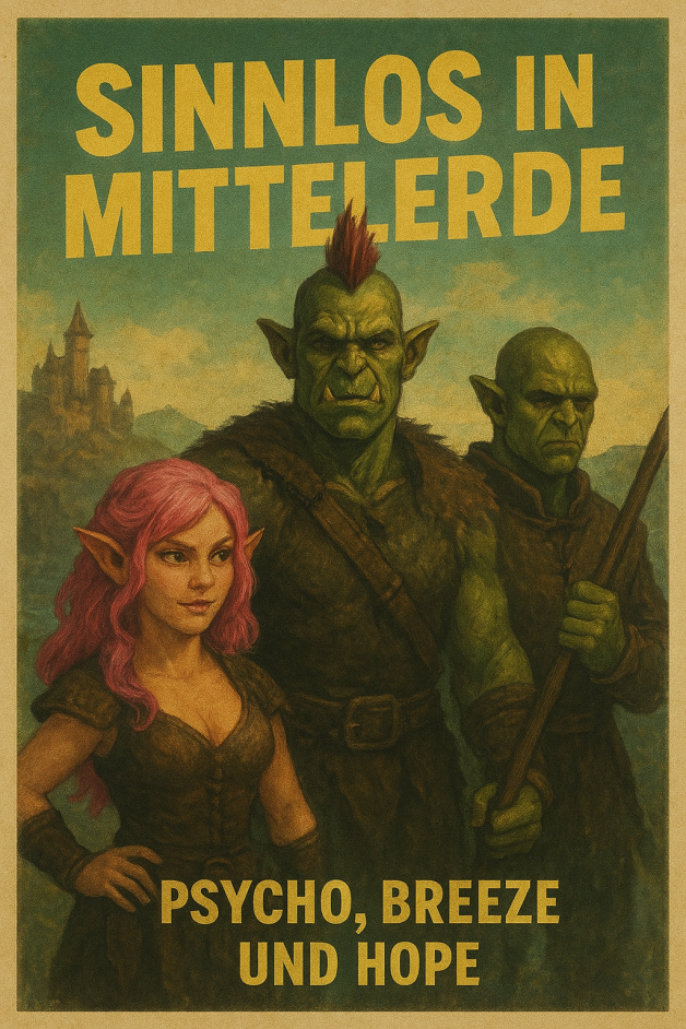 Innerhalb des Gasthauses drangen sich manigfaltige Besucher an langen Tischen. Da waren vor allem die Menschen. So rundohrig und unbeschwert. Seite an Seite mit grimmigen Orks in starrer Lederkluft. Aufragende Trolle überblickten das Geschehen, während sie eimergroße Humpen voller Blutbier, wasserfallartig ihre gewaltigen Kehlen hinabströmen ließen. Zwerge, kräftig und aufrecht standen auf den Tischen und brüllten ihre Freude und ihre Trunkenheit mit wilder Stimme an die holzgestützte Raumdecke.