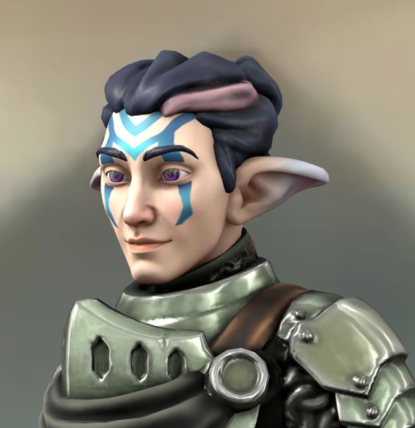 Tall, lean, and well toned, Aradane is considered a prime example of his heritage. Able to easily move about in full-plate armour, he is clearly strong and agile, with an imposing presence and clear commanding aura.