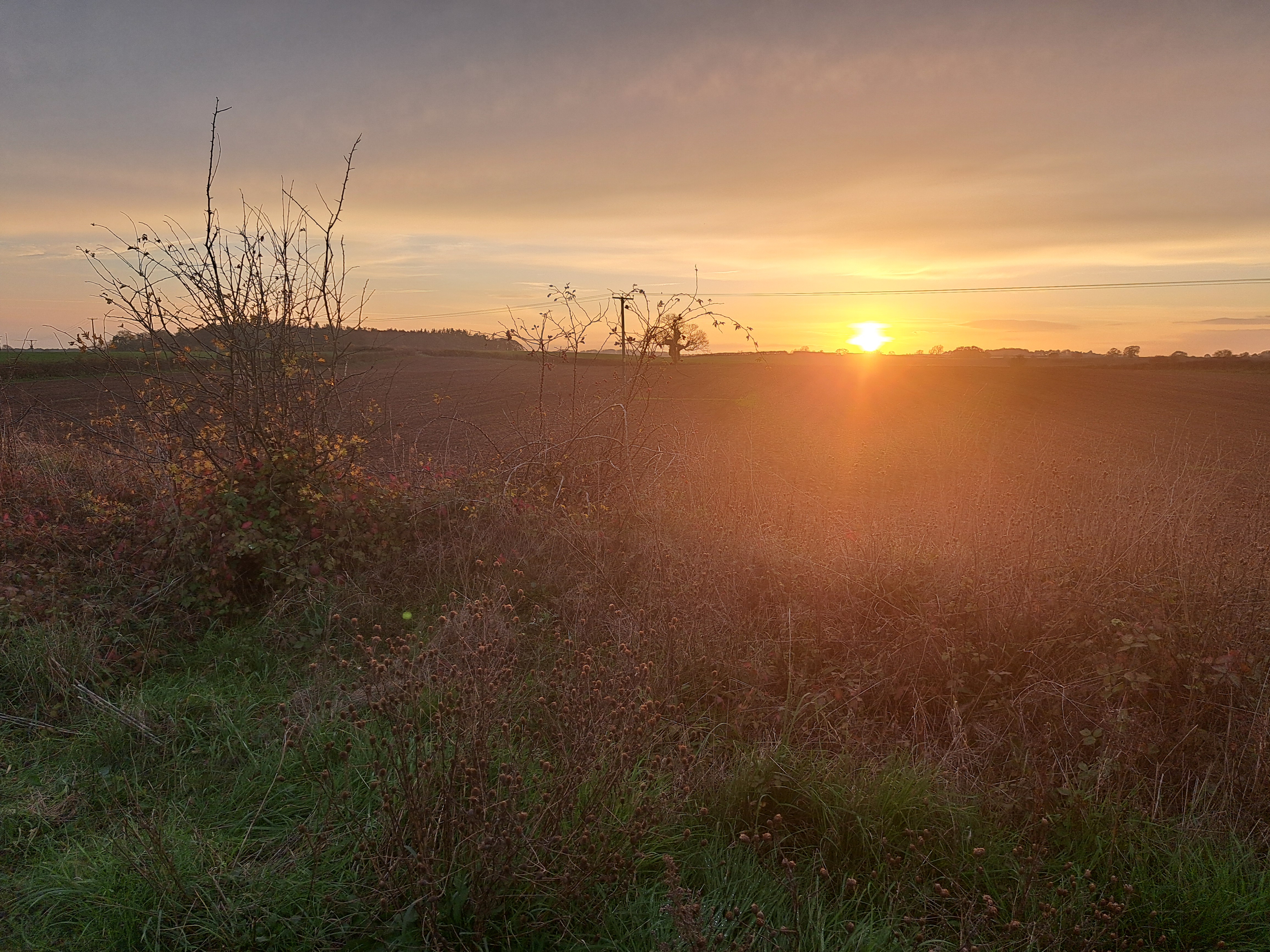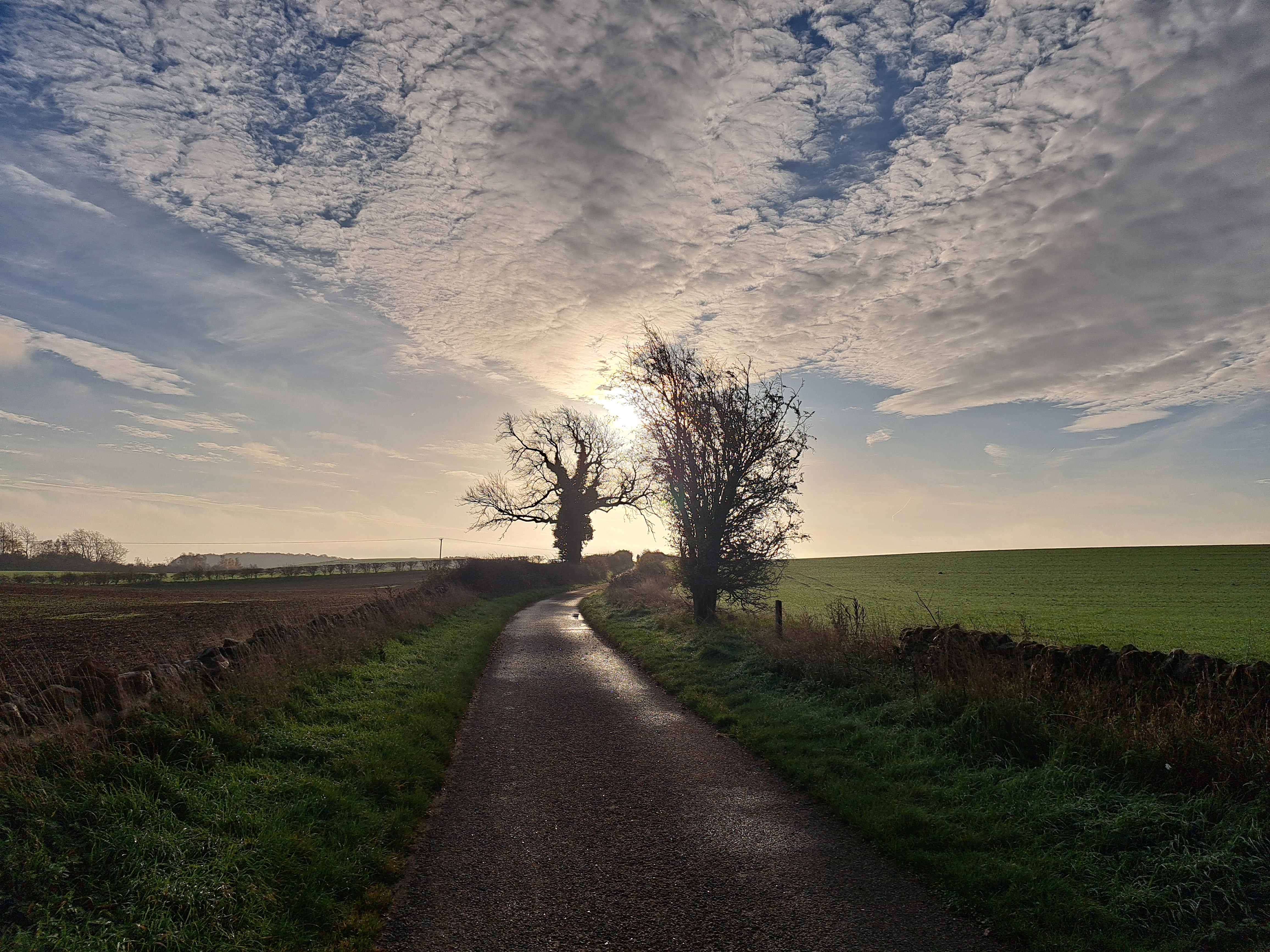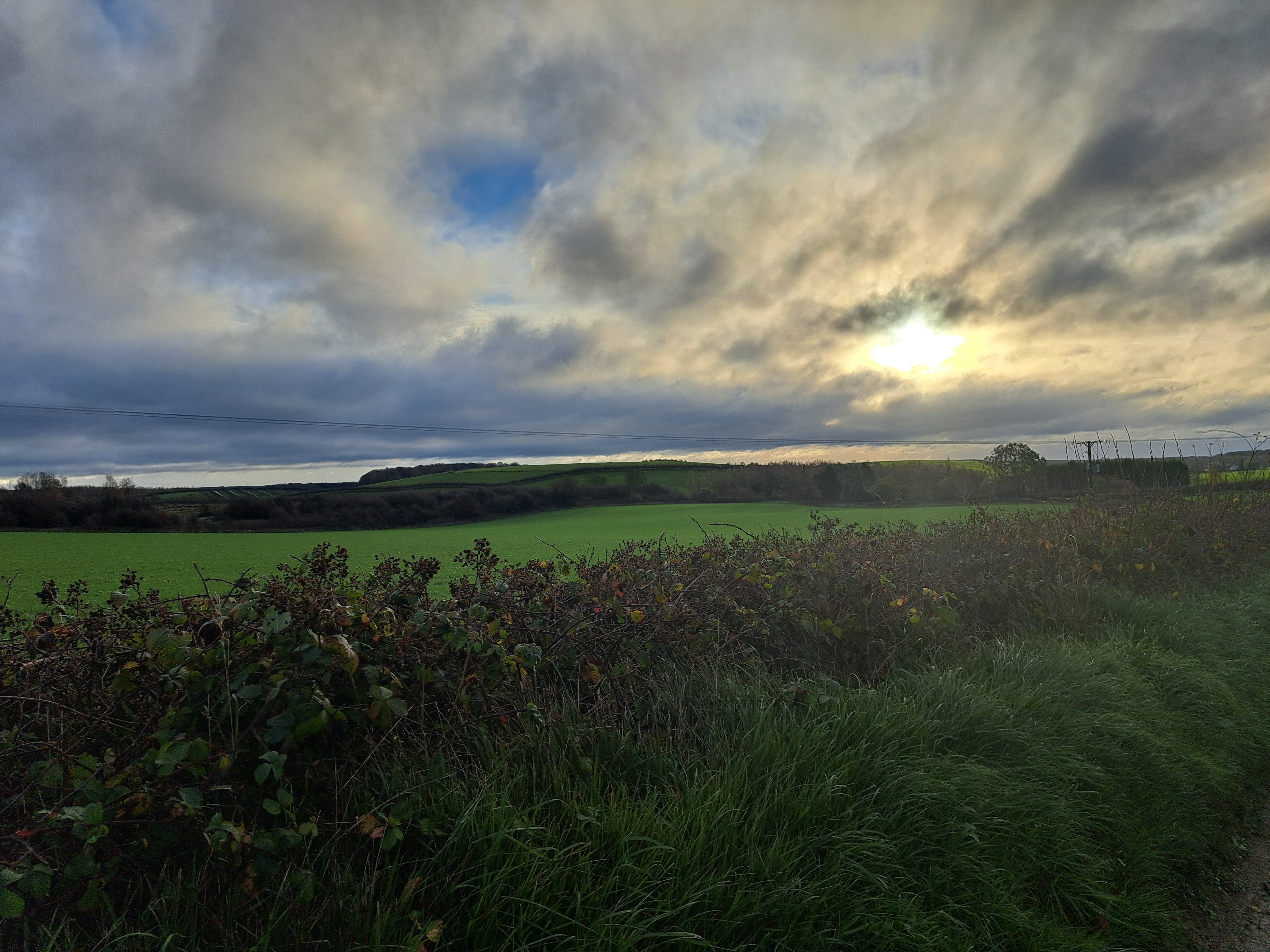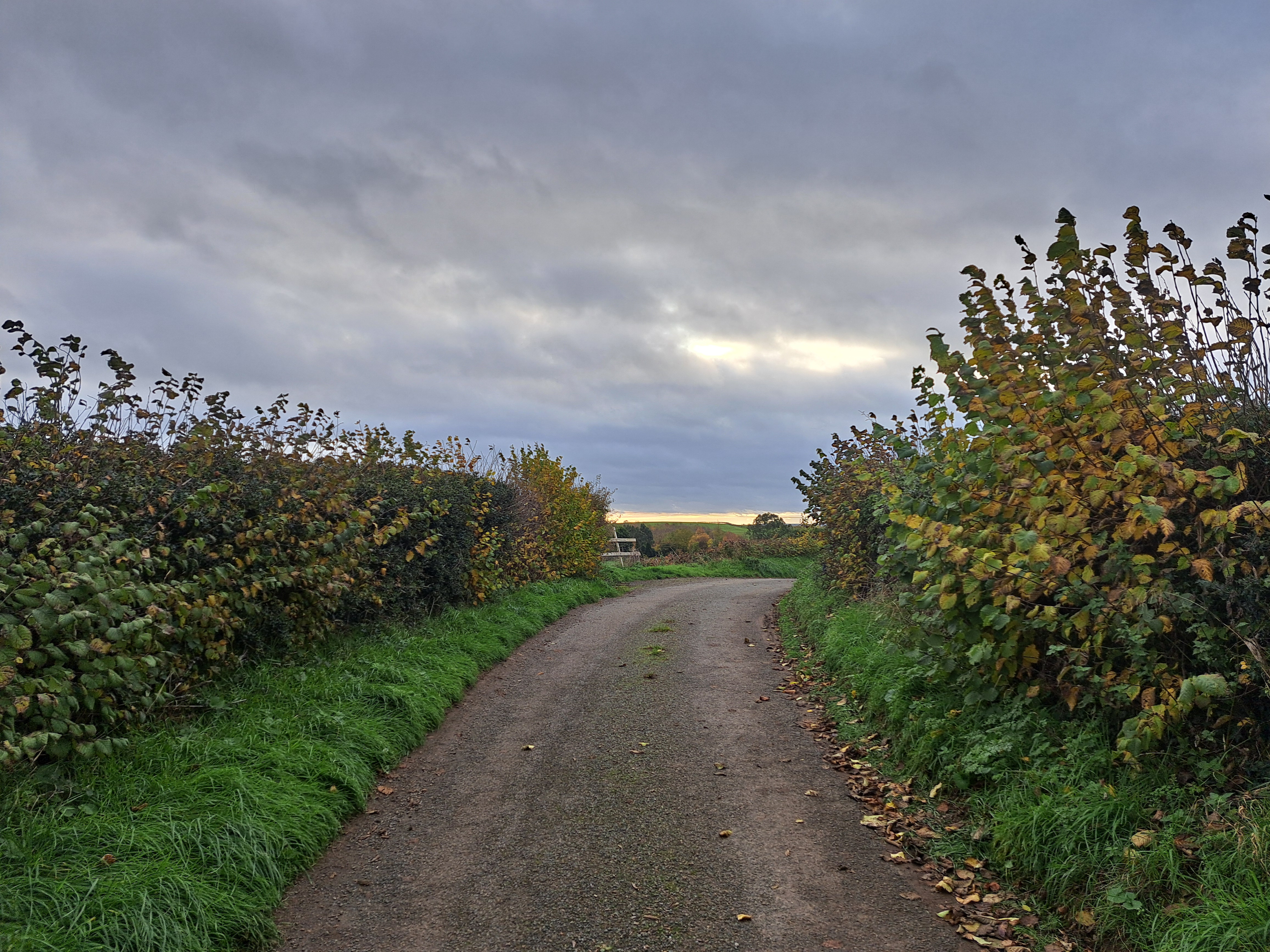 Well, this one's easy, because I walk my dog twice a day! Bramble is a demanding little princess beast, but taking her out over the farmland and across the old coalmine is always a great time to do some thinking. There's even a weird tree in the middle of one of the fields that I'm certain must have a story to it...