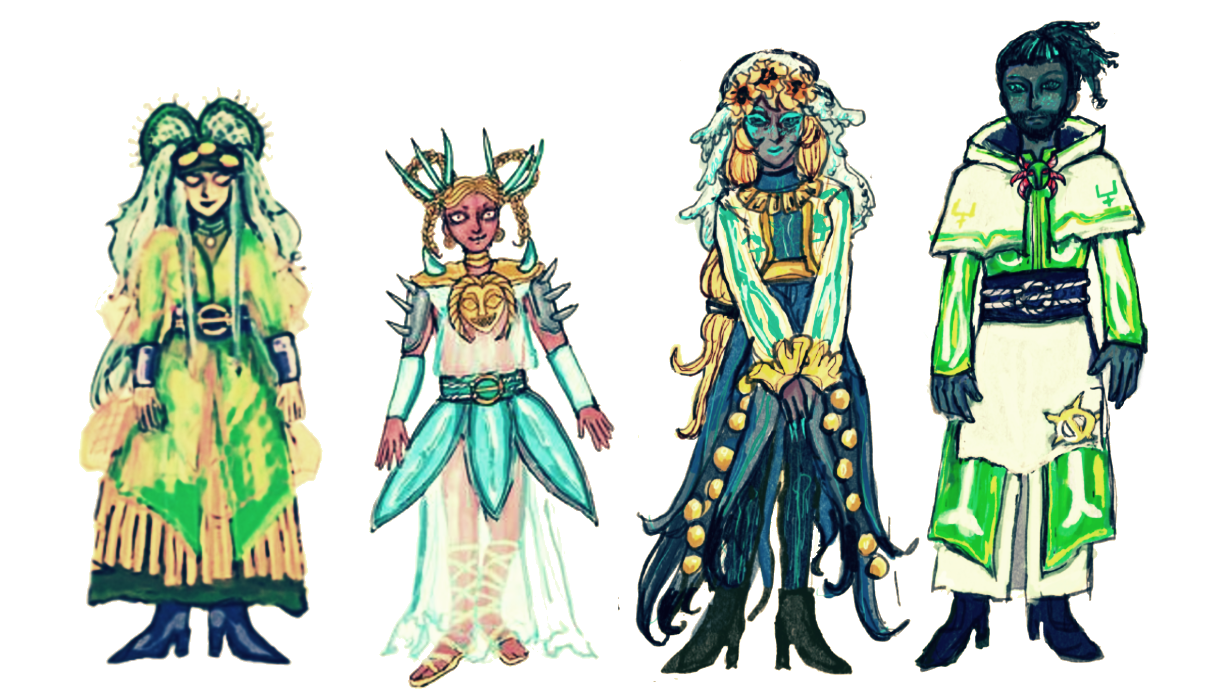 Their order colours and subsequent uniforms are white with hints of yellow, turquoise, and seafoam green. This colour scheme is similar across the other Brine minerals used in Noble Professions.