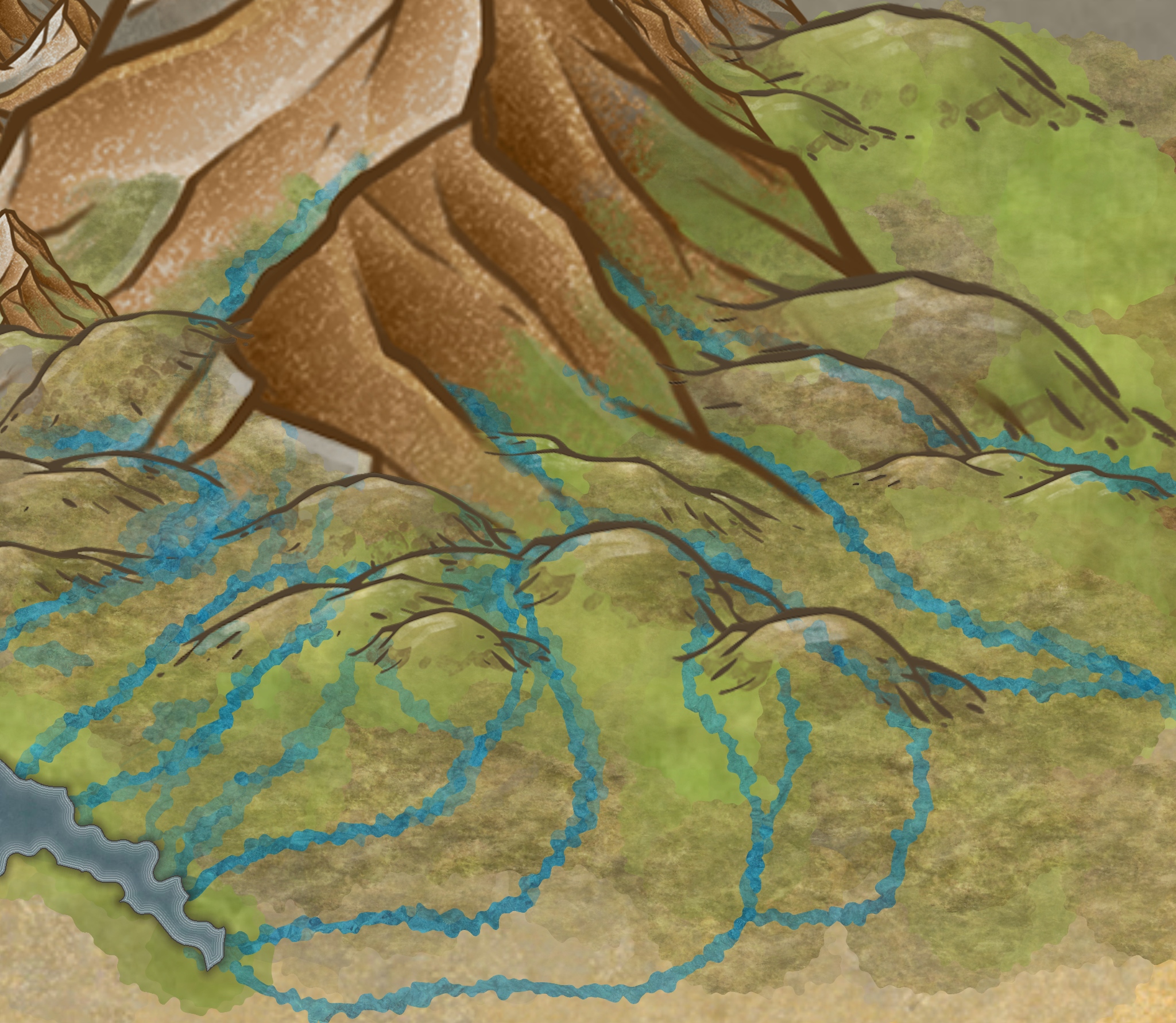- Many rivers carve through the valley, emptying into Meld's Mouth Bay, with the largest point being the Estuary of the River Meld