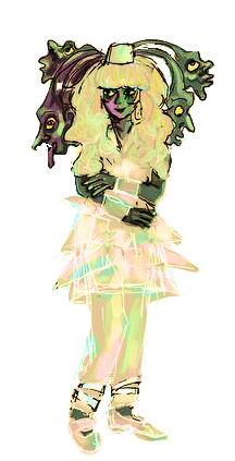 Ina is a highly skilled leechweaver and priestess, and she takes care of any humor issues within the team, and has sometimes been known to take bribes from opponents (in order to afford her many excursions to Jellow King). She is well known in Eskern and Pestilentia, and is able to use glamours (and bestow them on others) which make her highly charismatic and easy to follow. She also helps Marlene with the treasury, which Marlene made so by cursing one of her heads to never lie about their finances if prompted. Marlene has allowed her to take bribes in a pinch, and the two have a close working relationship. Thus she is very knowledgeable about the finances and workings of the Catu Samonii, both in her team and other competitors.