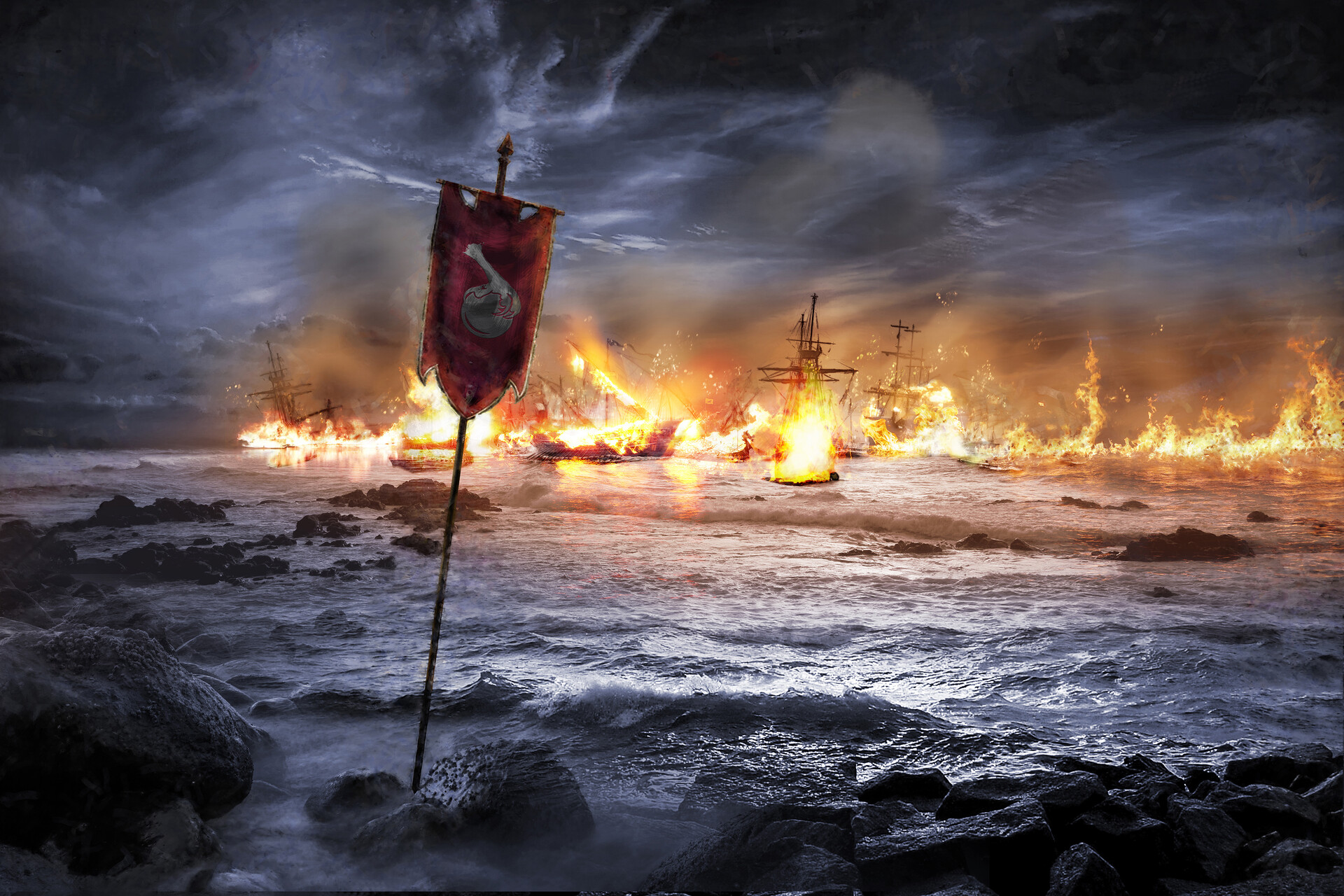 Every five years, when the first cold northern winds announce the coming of winter and its great storms across the Divide, western Vardania plays host to a fascinating site. Burning ships, dotting the sea in their thousands, in a chain from the far north to the far south, their demise not the result of war but of ritual, their end accompanied by the hymns of tens of thousands. This is no ordinary ritual, but the heart of an entire culture: the monument to both past and future of the Haragutai people.