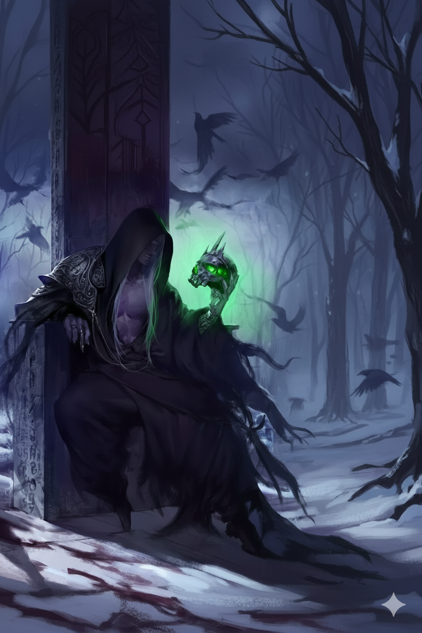Originaire de Nadarah, Ombre Lamesolide est le plus grand nécromant que connu Abrasia. Il repoussa les limites de la vie et utilisa un savant mélange de botanique et de magie entropique pour être le précurseur à l'état de Nilmor, aujourd'hui provoqué par le Déclin.Les squelettes et autres cadavres animés par Ombre Lamesolide avaient déjà bâtis la moitié de la tour. Le travail avançait bien et du haut de la colline, Ombre était satisfait. La liche Telvaxx gravit la pente pour rejoindre son maître.