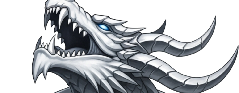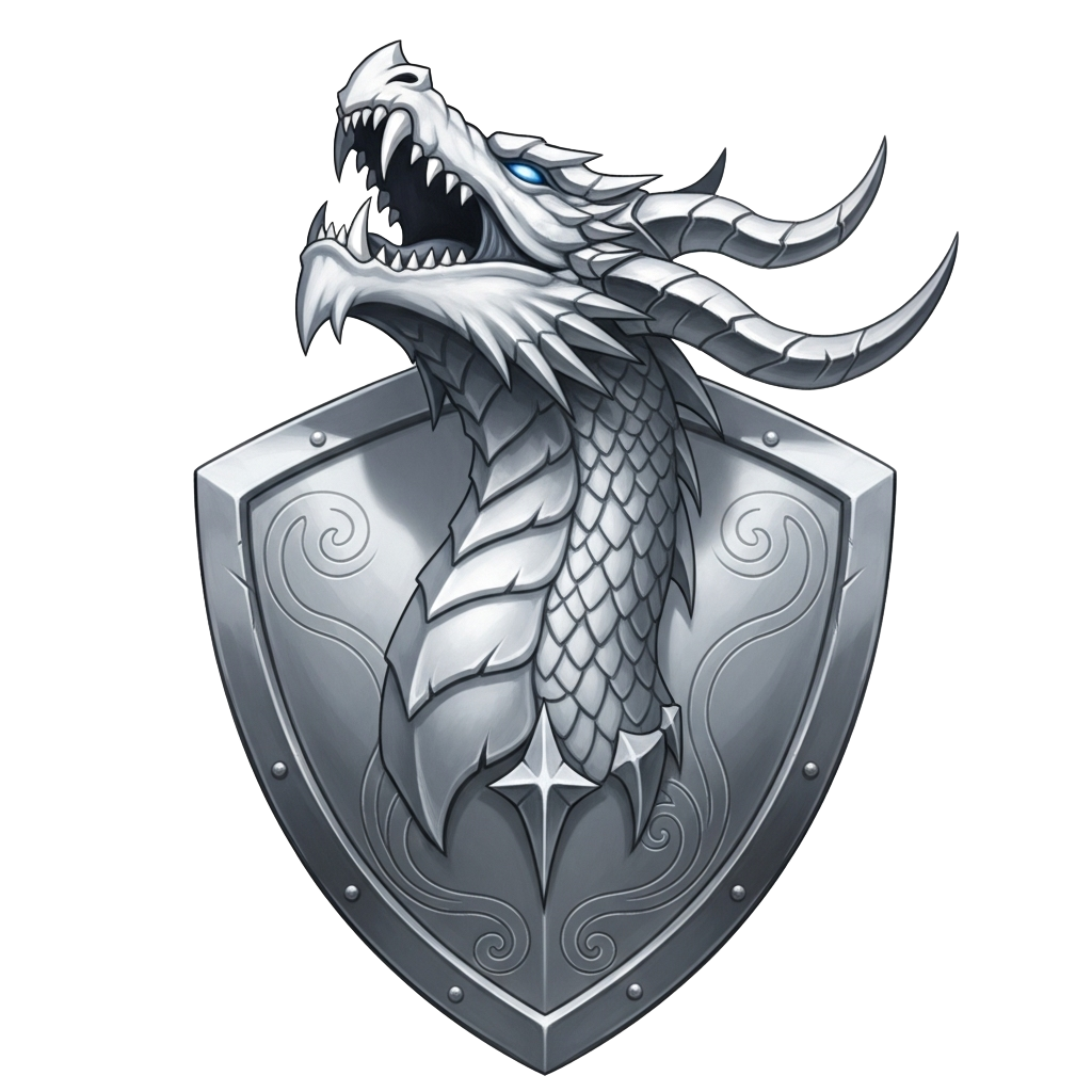 A proud and silvery white symbol of a dragon's head, roaring up to the sky as if proclaiming to its kingdom its promise to protect.