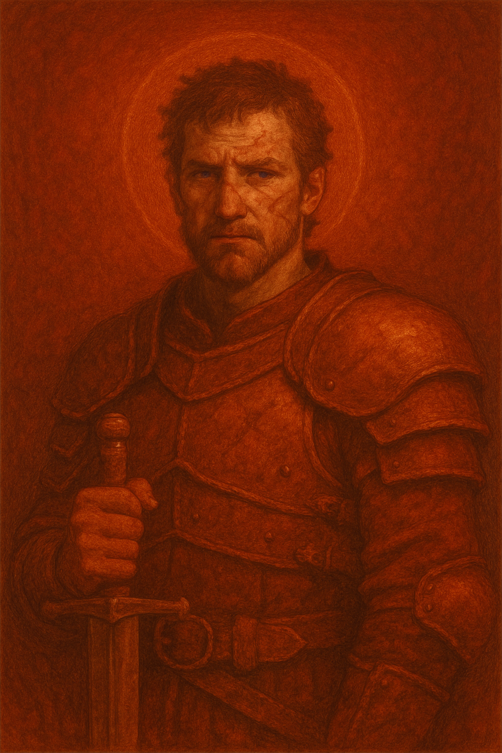 Rhyarus is the God of War, The Grand Strategist, The Ceasless Hunter and The Spirit of the Warrior. He is patron to any and all that find themselves caught in battle and offers his blessings to the brave, the fearless, the hopeful, and the selfless. He is indirectly known as the God of hero's as often those that received his boons go on to be remembered for the subsequent feats they accomplished. Worship of Rhyarus is not a common everyday practice. Typically he is prayed to during times of war and in the lead up to battles. Certain people who make a living through fighting would make a daily habit of prayer and offerings however. Major cities would have shrines in their barracks and war rooms so proper respects can be paid in short notice. While not a requirement for worship, often warriors will spill their own blood as they mumble prayers over a blood rusted alter. Civilizarions that are more militaristic in focus or military outposts would make Rhyarus their primary Diety and would raise large churches in his honour. These sorts of places are known to show their devotion through combat. In extreme cases these are done to the death with the victor being believed to have received his blessing. In wars Rhyarus is rare to pick sides and will give his blessings to both sides if properly prayed to. He is more likely to bless individuals who make some form of heroic act on the battlefield. Someone sacrificing themselves for their allies safety, a hopeless and defiant last stand or a desperate push to break through the enemy defence are all worthy of notice. A particular individual in these cases might find themselves moving with inhuman strength or speed, or enduring unreasonable amounts of pain and injury. It is these very moments that bards sing tales of in taverns across the realms. There is a level of morality and respect that Rhyarus expects at all times in battle. He believes people should only ever punch up, never down. While he believes those that are weak and defenceless are owed no power, the should not be unnecessary victims of conflict. As such when innocent civilians are indiscriminately killed the offending part will find themselves incurring Rhyarus' wrath. This usually manifests in their next battle having disastrous results.