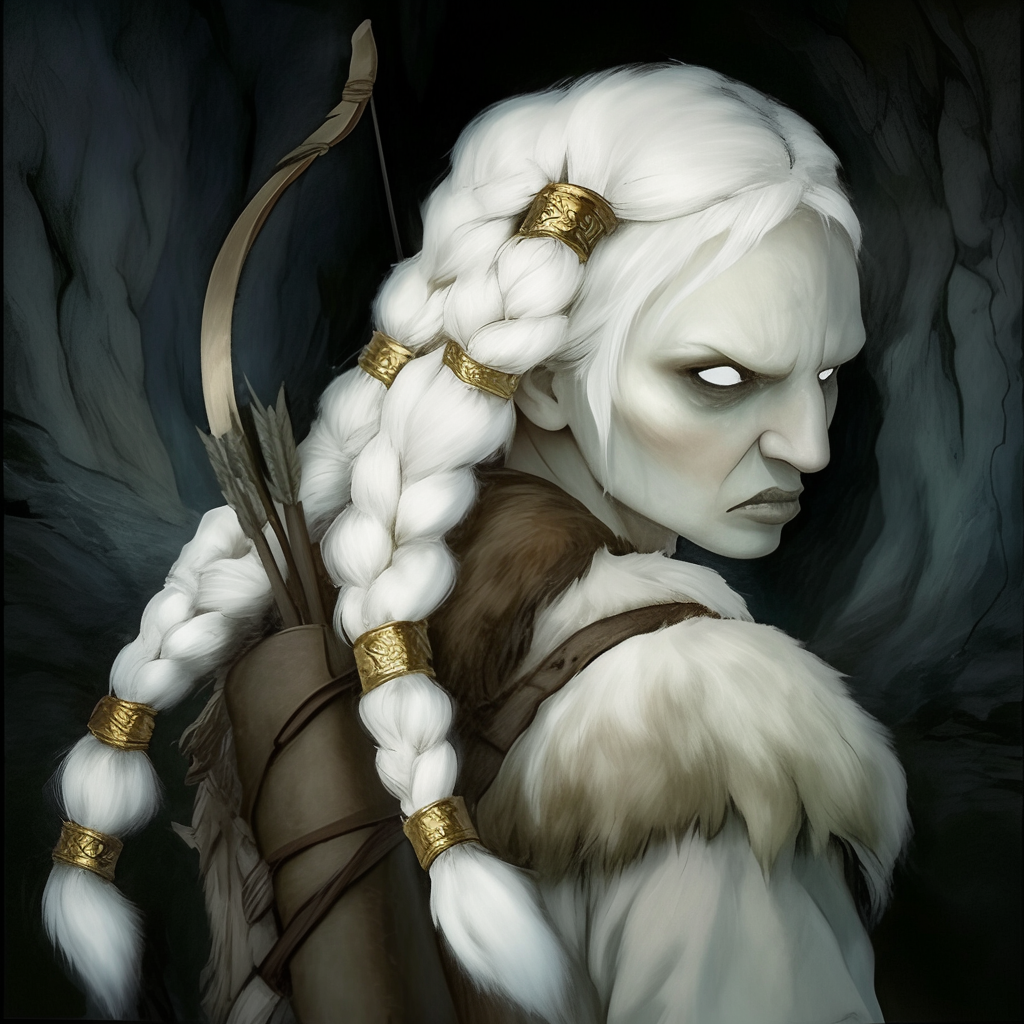 As the party gained their bearings after being trapped under the metallic net, Zero attempted to diffuse the situation by speaking to the Deepfolk in Dwarvish. Zero attempted to explain what they were doing down there, but the Deepfolk woman didn't want to hear it. She informed the group that they would be escorted to her village of Rikhevlovir to meet with someone called Nylin. While Scarf and Shein briefly considered trying to break free of the net, Zero told them to stand down and allow themselves to be escorted to the village. Proceeding down a series of passages after being bound by the woman, the group eventually came to an oddly shaped large cavern with numerous stalactites and stalagmites, giving the cavern the appearance of a giant mouth with fangs. Throughout the cavern were a moderate number of simple buildings constructed from some kind of white stone, perhaps limestone, and glowing mushrooms; some of which stretched toward the cavern ceiling like trees, softly illuminating the dark village. There were strange large featherless birds in pens, and as the group passed by the Deepfolk, a number of them looked at the group in surprise and turned to go inside their houses. They came upon a larger building with a man sitting out in front smoking a pipe of some sort. The woman addressed the man as Aingeir and asked about Nylin, and was told she was inside preparing talismans. The man addressed the woman as Junyall and after dismissing him, she brought the group inside, where they gagged and choked on the thick incense hanging in the air.