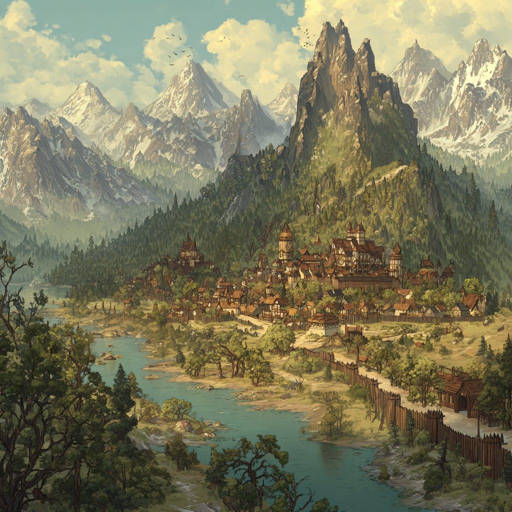 Though the town has enough stone that they could make stone walls to protect the town, the town's buildings are quite spread out and it would be a much larger effort than they are willing to commit to, so the town is simply protected by wooden palisades. The local Goblins can scale these quite easily; however, their best defense are the totems placed at intervals around the palisades. These were created by Verniel, and when Goblins are within range, the eyes on the totem glow and they give off an alarming sound. However, the totems consume a good deal of static Flow to function, and thus using higher order spells may not be possible in their vicinity.
