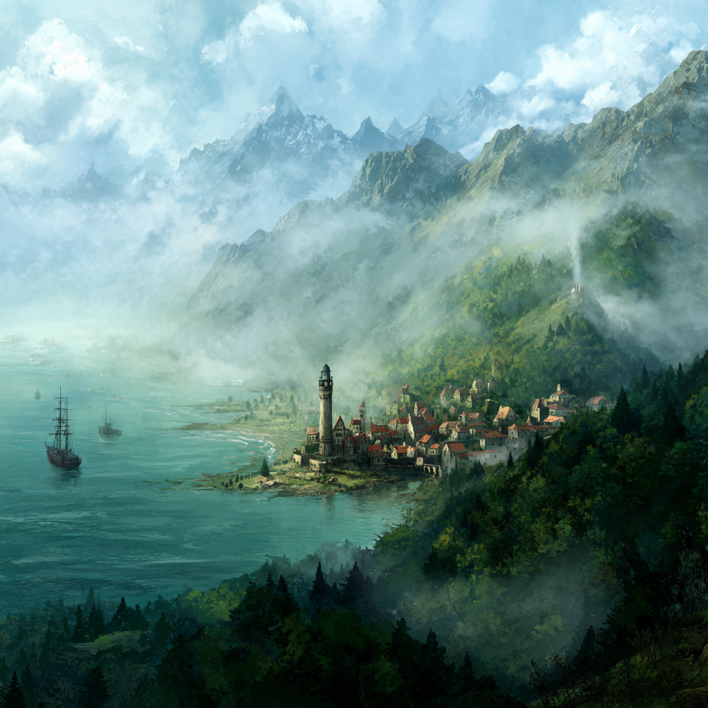 A minor port town on the southern shores of the westernmost bay of the Gulf of Liborius, Nolaviath was founded late in the Upheaval period and is home to a culture of robust sailors who have braved many dangers in order to provide a convenient access port for trade bound for Mythwell. Though Kor Silan on the northern shores is closer to Mythwell, it has a reputation amongst sailors and merchants that lead many to avoid it.