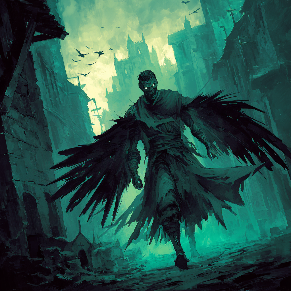 When a Luminari is seduced into Maven's control, they are transformed into a Noscatrea; they lose their golden pallor and their skin becomes incredibly pale like a corpse. Their wings become physical and hang raggedly from their backs, leaving them unable to fly, only able to glide. Their features become gaunt, with their eyes becoming sunken and dark, and glowing a pale green color. Their hands blacken, and they gain the ability to shift between the Material and Ethereal planes at-will. Its name meaning "devourer of death" in Capruta, they develop a hunger that can only be satiated by absorbing spectral Flow, the energy that spirits are composed of; forcing them to hunt down the lost souls wandering Aellorah.