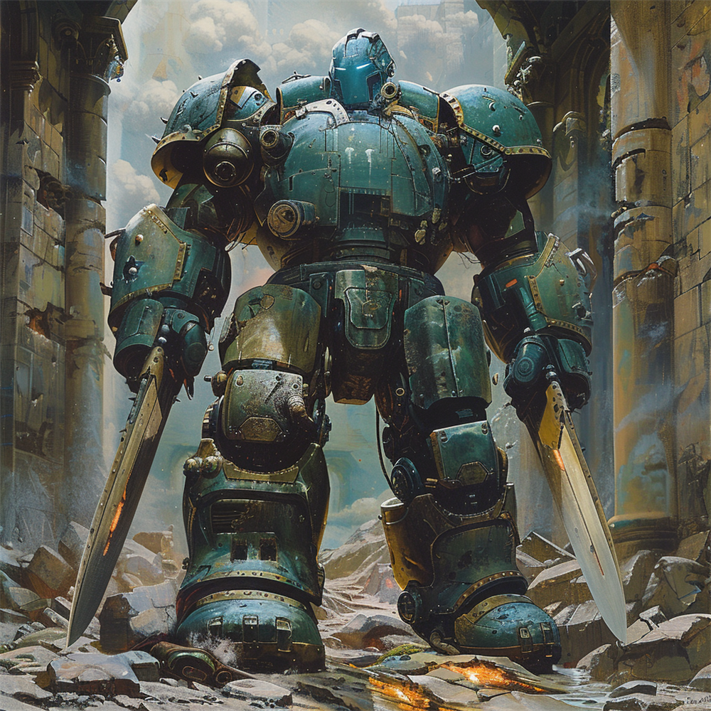 The Elite Runeguard rushed in, with two hanging back to protect King Rangrim. As Dain, Balvin, and Gardain met them in melee, with Summer taking quick shots from behind the pillars in the room, Rylin attempted to shoot King Rangrim, but it bounced off of a barrier similar to the one that protected Glondor in the Runesmith College. Seeing this, Merrick decided to go for broke and unleashed a Maddening Darkness in the rear of the room, enclosing the king and the Elite Runeguard protecting him in a thick darkness that began to assault their minds. This angered King Rangrim, who decided that rather than watch, he would take a more active role. While the rest of the group was unable to see this develop due to the Maddening Darkness, Merrick could… the rest could only hear as the turning of gears and clockwork machinery sounds began to emit from the darkness as King Rangrim began cackling, saying that the Runesmith College cooked up one last toy for him that was unaffected by the awakening, and he'd stomp them all into the ground. Merrick saw the king's throne begin to rise up into the air, showing massive legs underneath it, and two arms rise out of the ground to the sides and attach themselves to the throne. Then, a massive chest plate swung over the top to enclose King Rangrim and a head appeared. This appeared to be one of the massive 30 ft. tall Forgeborn Titans that the party saw when they briefly explored the workshop of The Nexus.