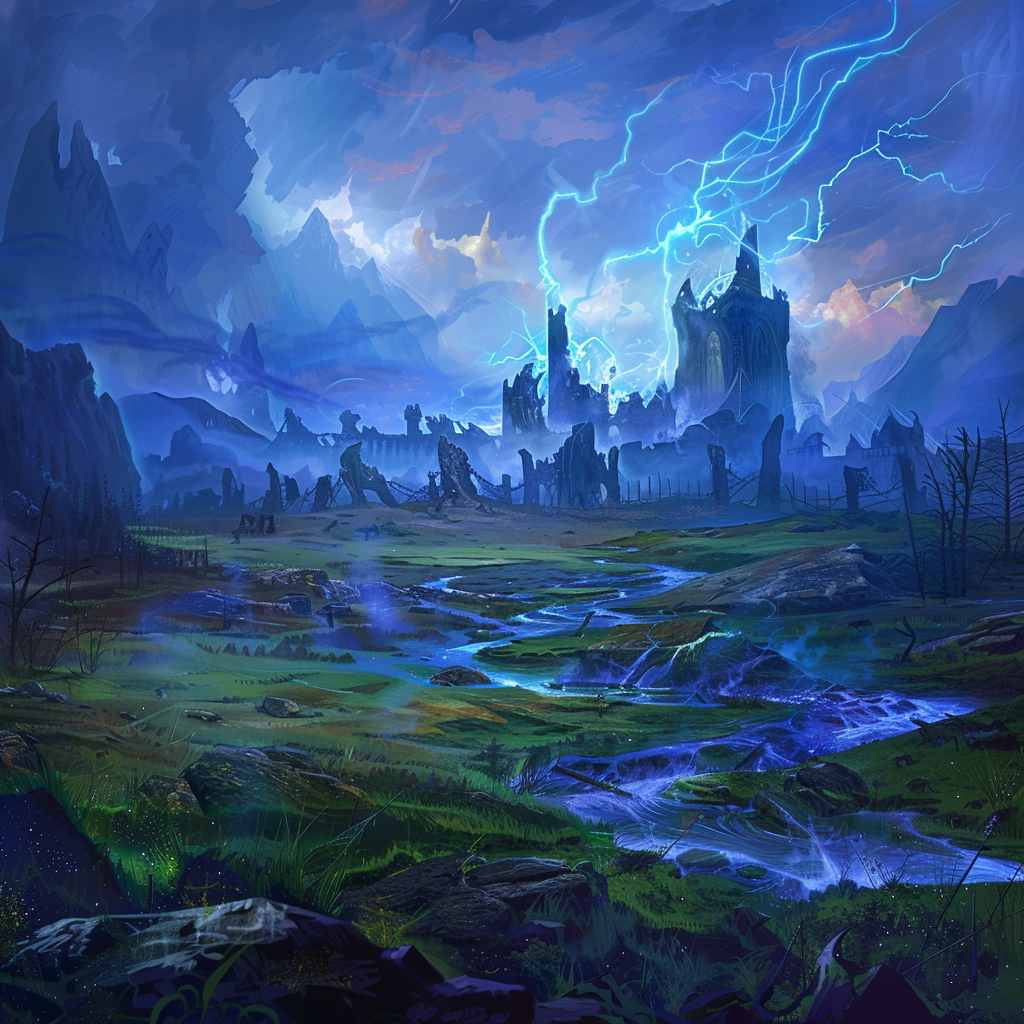 The heat and high winds coming from the blast buffeted them, and a massive dust cloud overtook them. Choking on the dust, they stumbled around in the dust until it cleared, after which they looked up Mythwell, or what once was Mythwell, as the city had been completely annihilated. Standing frozen in abject horror, the group took in the sight and thought of all who had been in the city, but especially those they knew... Tyllaetha, Nashar, Anael, and even Tabitha. Horror, rage, and sadness filled them as they mourned the losses. However, they did not have much time to process this until a rumbling began to shake the ground beneath their feet. They looked south, already knowing what they would see, and witnessed Lys' Wellspring erupting. Feeling a sudden change in the atmosphere around them, they looked toward where Mythwell once stood and witnessed a strange black-blue energy settling over the city's remains. Immediately afterward, they saw the grass around the ruins of the city began to brown and then blacken as all plant life began to die, and the group felt something pulling at their animate Flow, weighing heavy on their very life force. Sensing that they were in immediate danger, Dain pulled out the Ring of Teleportation and teleported the group to the Dead Goose in Eldham.