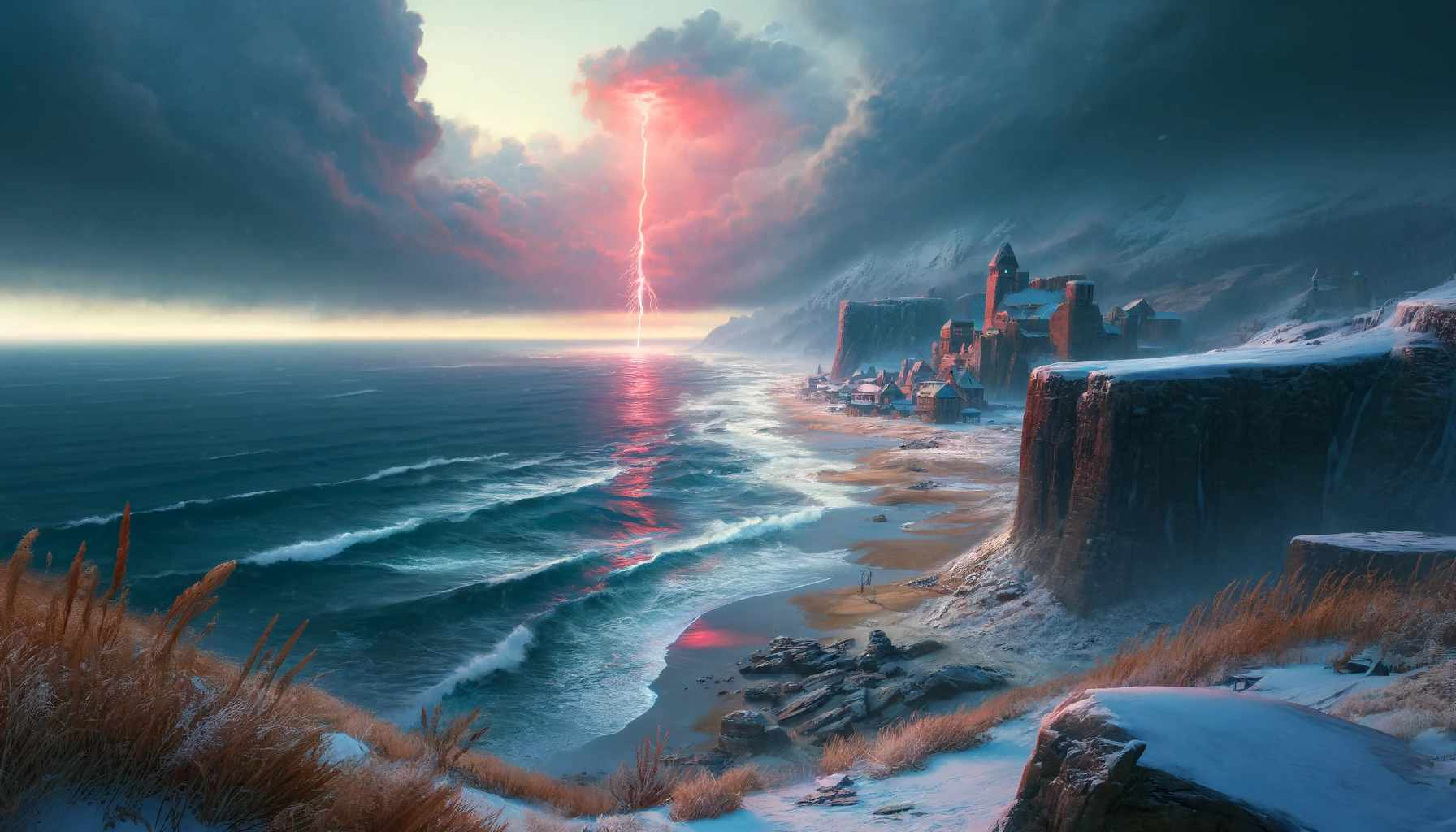 Unnerved by these findings, Dain pockets the reports and decides to have Merrick make him invisible so he can sneak back to Overseer Kali's office to retrieve her Runelink. He manages to use the Forgeborn Control Units as cover and sneak past the Runeguard and return to Overseer Kali's room unnoticed, and quickly removes her Runelink before returning to the Master Control Room. Using it on the Runelatch on the control panel, it is unlocked, and Dain finds two buttons: one labeled "Master Kill Switch" and one labeled "Master Recall". Dain asks Gardain and his father to cause a distraction so that the Runeguard won't come after them once the switch is pressed. Gardain and Balvin move out into the Control Room, and following Gardain's lead, the two bonk the Runeguard on the head and take off running, leading them away. With that, Dain throws his palm down on the Master Kill Switch. As his hand reaches for the button, Summer notices a strange visual glitch on the monitors displaying the Forgeborn perspectives, and then feels a rumbling in the ground just before the button is pressed. An alarm begins to sound, and the Dwarven pilots begin taking off their suits in confusion and fleeing the room in a panic. A confused Dain says that they need to get out of there. As they flee from the Control Room, Dain drops all five of his charged Flow Cells on the ground around the Control Room before hitting them with an upcast Lightning Bolt, causing them to begin to spark and overload. He flees back to the Overseer's office where he finds a Runeguard pounding on the door asking the Overseer what's wrong. Dain quickly runs up and bashes the Runeguard across the head with Stormsmasher, crushing his skull. He then enters the room with the rest of the party and drags the Runeguard inside. Shutting the door behind them, Dain quickly runs up to the control panel and presses the Emergency Transport button. A previously unnoticed pylon on the wall flashes, and the party begins to glow blue briefly before their vision goes white. When it returns, they appear to be on the edge of a forest near the shore. However, they are startled by the sound of thunder crashing and the ground rumbling. They rush out to the cliffs above the shore where they see a darkened sky with storm clouds spreading outward from a distant point on the western horizon, radiating outward from a large column of red light shooting toward the sky. Though they had never seen one give off a red light before, they recognized it for what it was… a Wellspring eruption. Red lightning began to strike all across the sky as far as they could see, including several bolts that struck around the town of Frostport nearby.