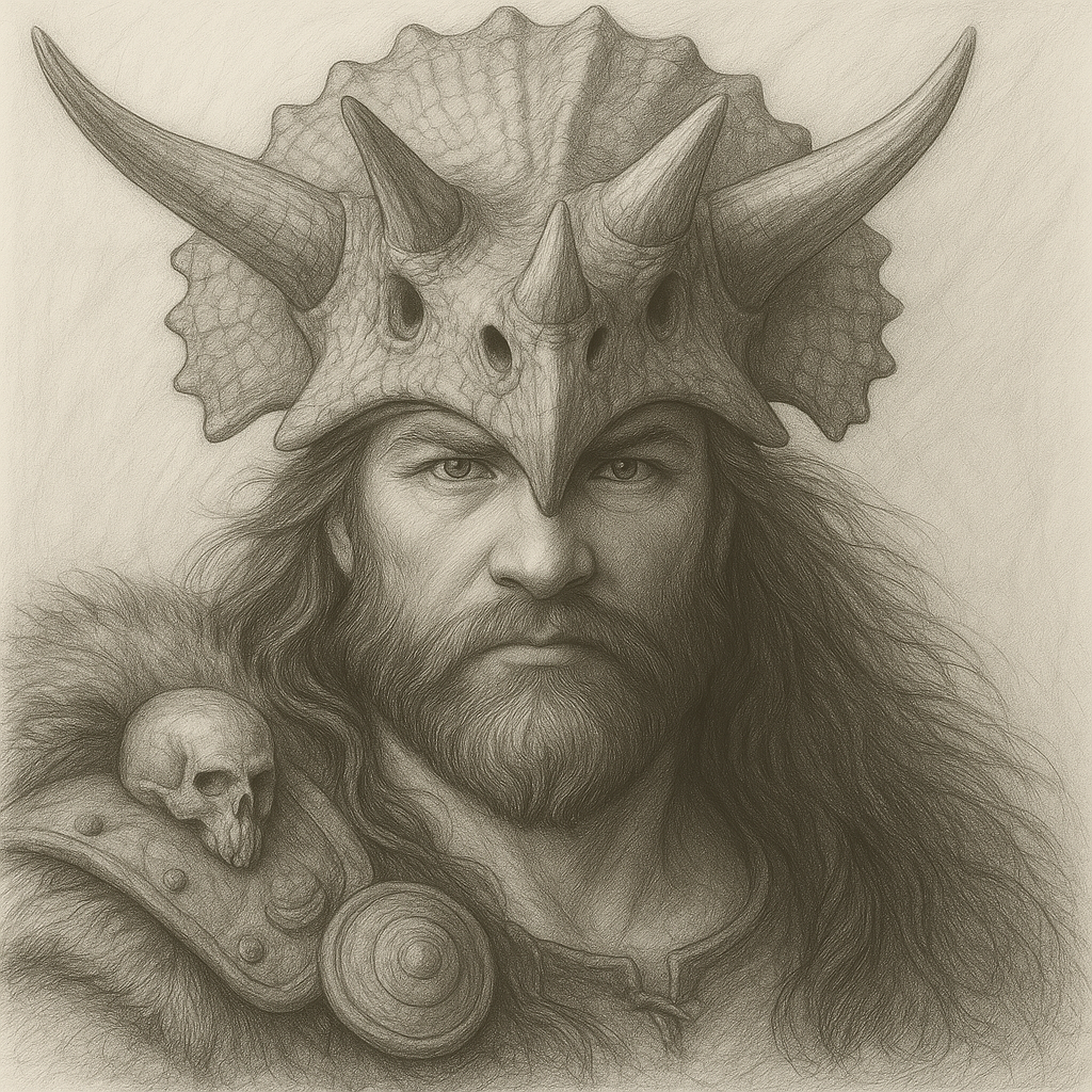 After years in the arena, Ghormm had earned a fearsome reputation for specialising in the arena’s most dangerous game. Many exotic beasts from distant lands left their mark—but none were deeper than those left by a triceratops.