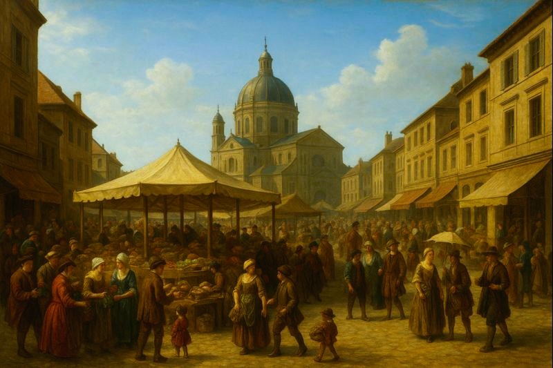 At the centre of the district stands the King's Harvest Hall, a grand pavilion packed with rows of canvas-topped stalls. Farmers from as far afield as Oakhurst offer fresh fruits, vegetables, cheeses and fish. By midday, the market becomes a swirl of languages, haggling and festival-like bustle—one of the most iconic sights of daily life in Orthay.