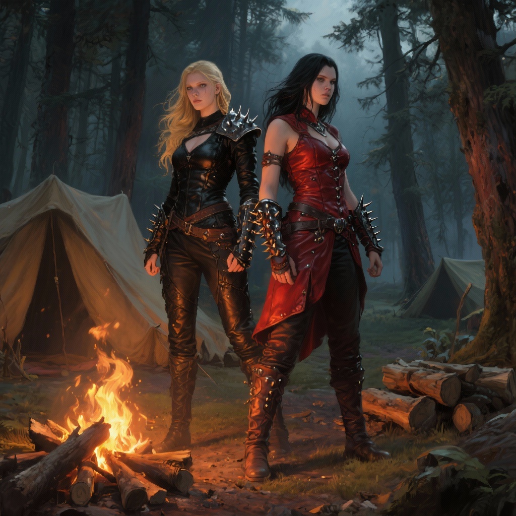 Both preferred the visceral certainty of fists over blades — the crunch of bone beneath a hardened gauntlet, the thud of impact when a jaw met knuckle. Each sister wore a pair of thick leather gauntlets studded with dark metal spikes, custom-made and lovingly maintained. Daggers rested at their hips, but these were tools of necessity, not preference. A knife was for finishing a fight. A fist was for winning one.