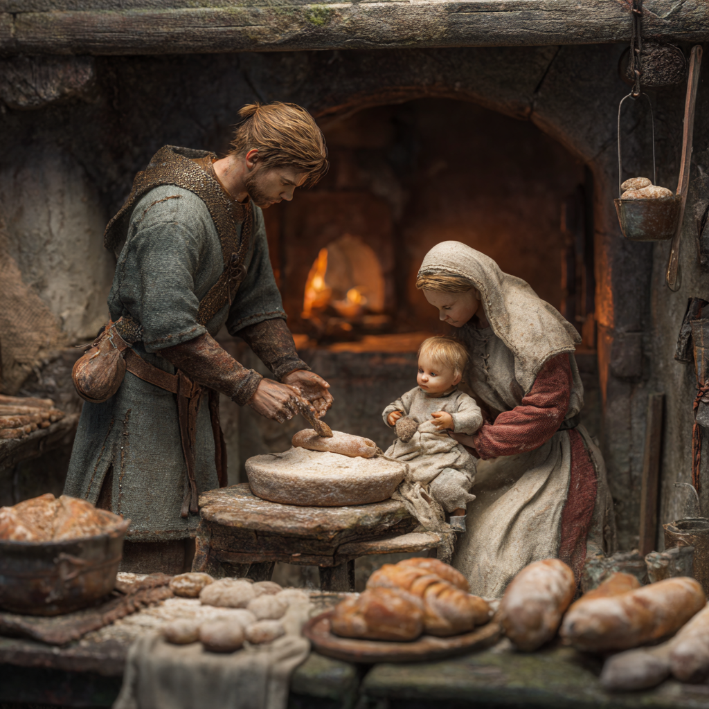 Hans & Greta are a young married couple whose son Jakob was born in the city of Aachen. They have recently moved within the last year from Aachen to Eschbach when they could take up their own family business when they realised there was a bakery needed. As the town had expanded the local cottage industry couldn't keep up and sometimes they will take in a few local breads & the like made by locals to sell.