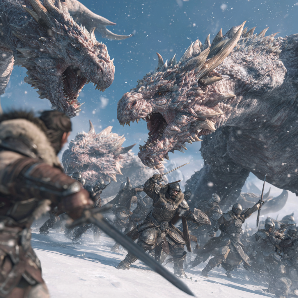 Conflicts erupted in many theatres, the majority on land, though a few took place in the sea deep below the surface, and a few high in the air above the clouds. The Dragons had superiority in the air but unable to fully stop the onslaught. The Giants managed to plough deep into the sea and as far as deep into the Underdark.