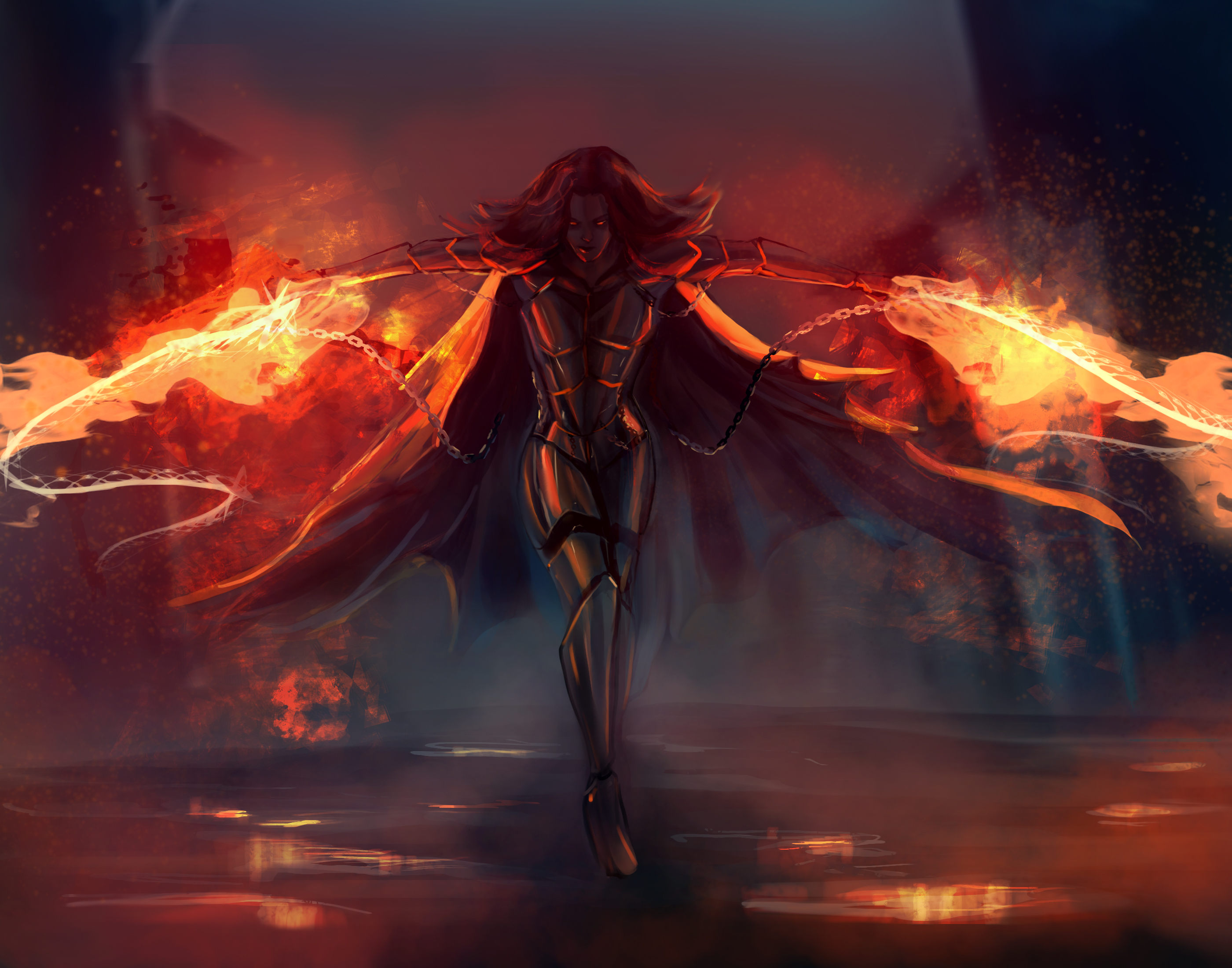 Artificial dark matter is often wreathed in a faint blue or red flames, although these flames produce neither heat nor cold. Careful observation of the flames reveals they are drawing energy inward rather than releasing energy, similar to watching a recording of a camp fire in reverse. Artificial dark matter is created by disrupting dark energy’s influence on dark aether. Strengthening or weakening the dark energy constant causes akasha particles to take on baryonic properties. Once akasha particles are converted to artificial dark matter it can be manipulated like normal matter. It only takes a slight variation in dark energy to induce this transformation from dark aether to dark matter. Very few creatures and even fewer technologies are capable of such influence.
