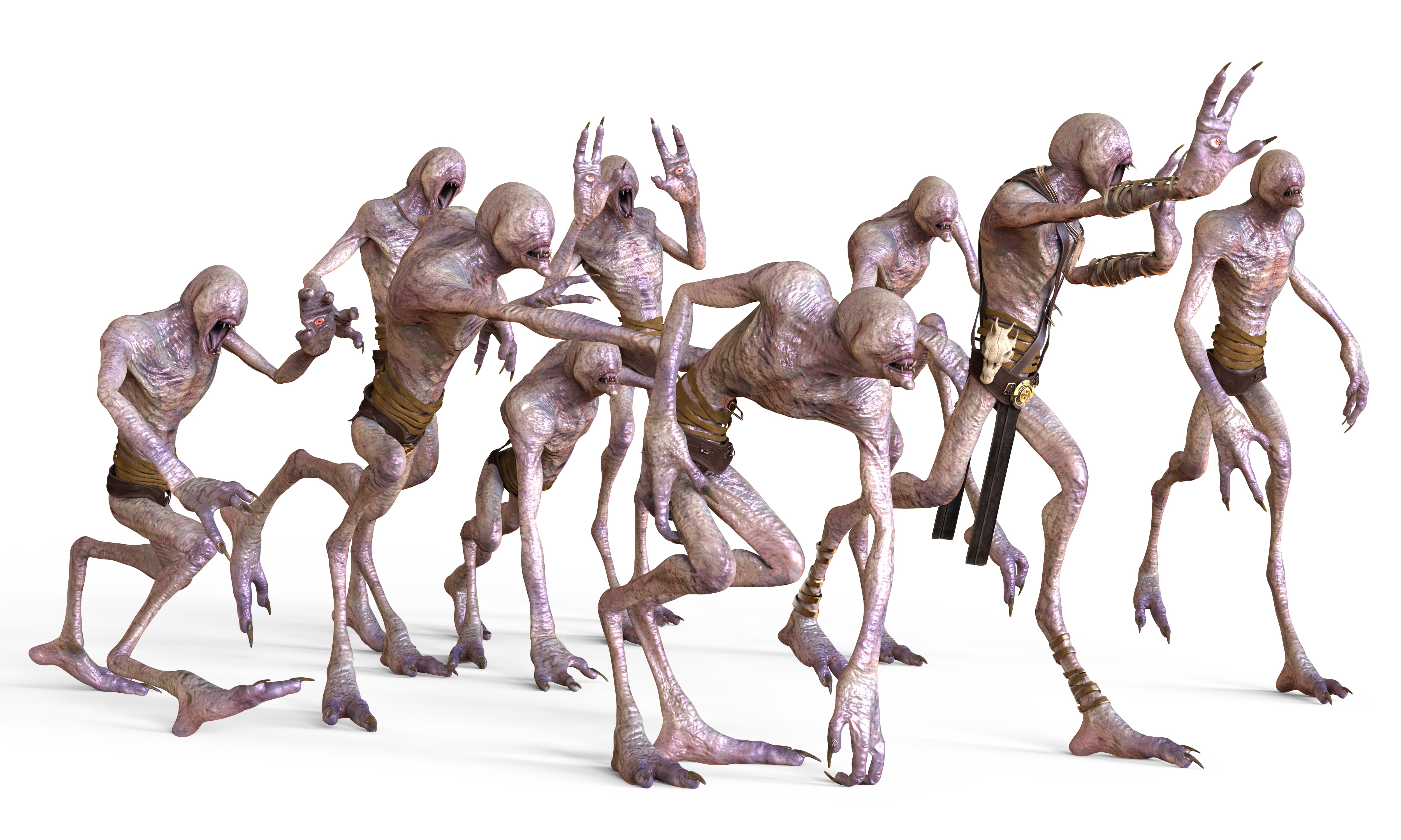 Resembling a medium sized feral naked mole rat, a pack of chattel is a terrifying sight to behold. Only the slightest hints of their once human visage persist. If released in their community of origin chattel will unconsciously hunt their loved ones. Imagine the horror of recognizing a loved one’s tattoo or piercing on the beast which is hunting you.
