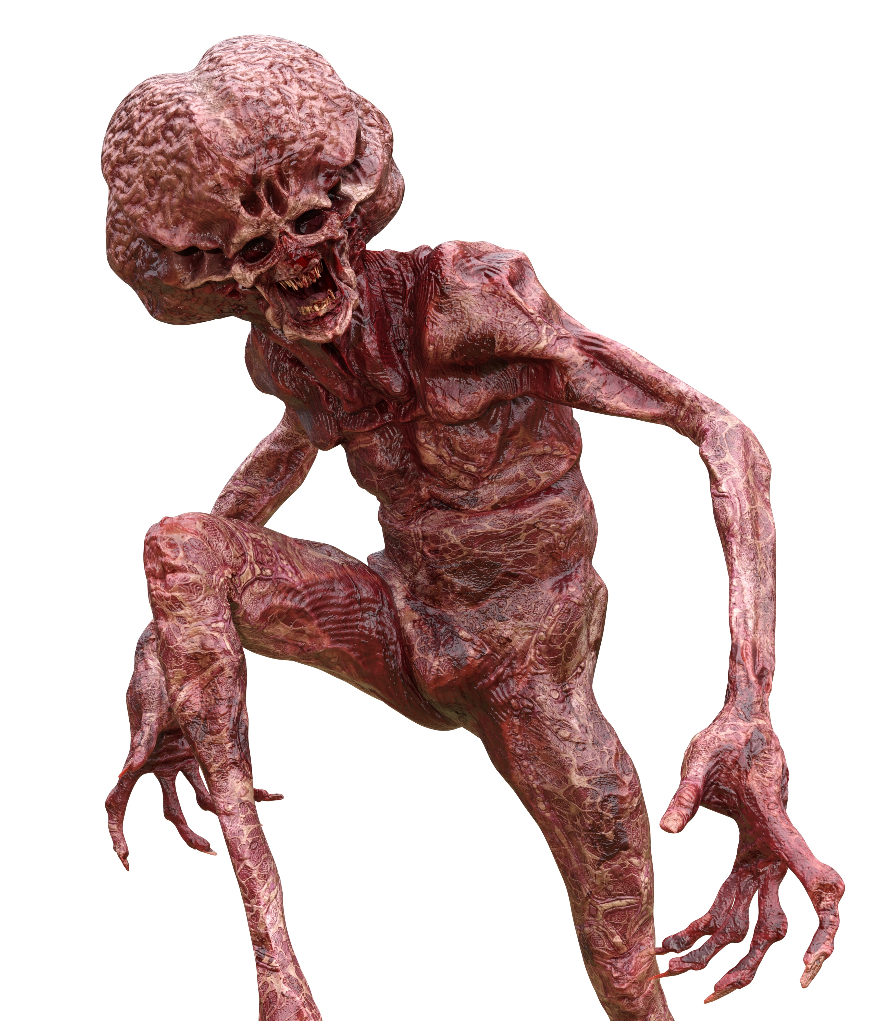 Type 7 hive horrors have an enormous oversized cranium resembling brain coral in both appearance and structure density. The rest of their body has a feral appearance distinguished by a boney salmon colored carapace. These hive horrors are more commonly referred to as mushroom heads by those who have fought them and lived to tell their tale.
