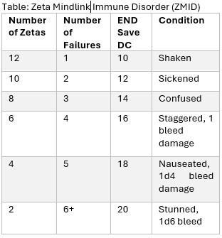 Table: Zeta Mindlink Immune Disorder (ZMID)