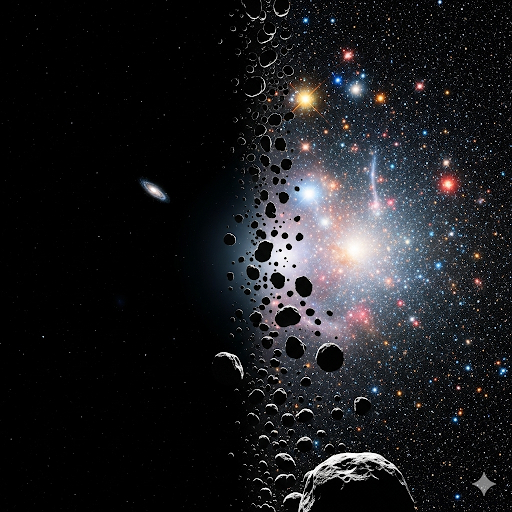 This is like the Oort cloud, but instead of surrounding a solar system, it surrounds the galaxy. It is a perfect sphere and the debris is an average of an Earth's width apart from each other. This is quite dense as the average Starship is the size of the Pacific ocean. When viewed from the side (like above), there is a striking contrast between the busy galaxy with all its splendor, and the black emptiness. The Soorlin Sages described it as if you had half your eyes underwater, and the other half above the surface.