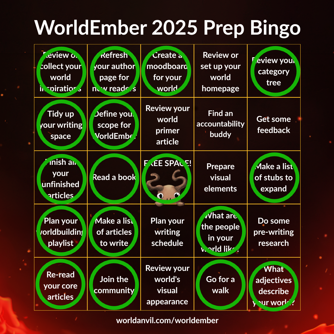 Over the years, it feels like it is harder for me to be part of the community when outside of the main challenges, and that I have even stopped searching out new worlds to read about, and that I give less feedback. I'm coming back for the challenge again, and I dusted off the button for WA's Discord server, coming back to my chapter, too. I promise to try to interact more.