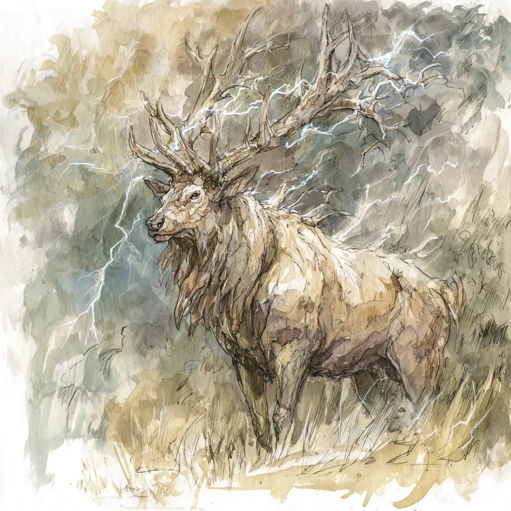The mountains are home to the Thunderhorn Elk, a massive elk whose antlers crackle faintly with static during storms.This is GM information