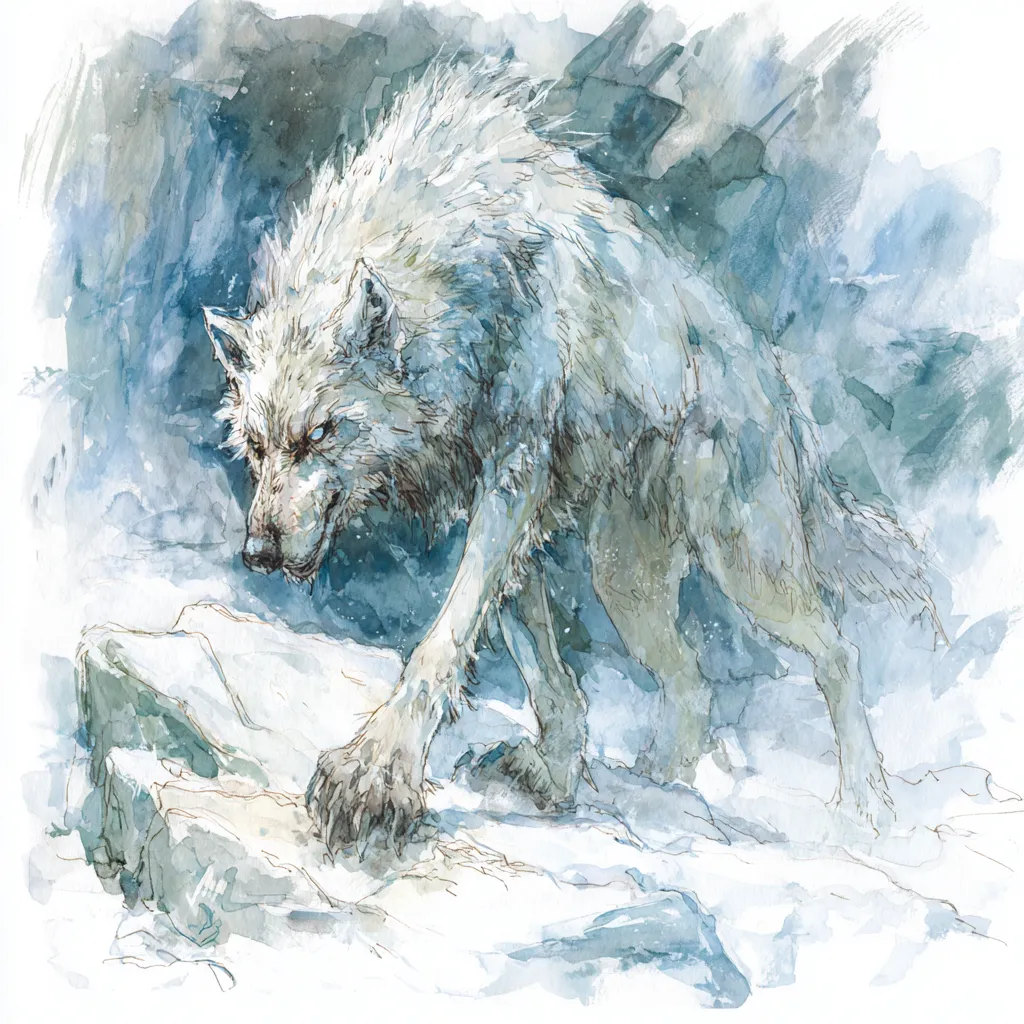 The Glacier Wolf is Kramar’s most feared predator - pale-furred packs that blend into snow, with eyes glimmering like ice chips.This is GM information