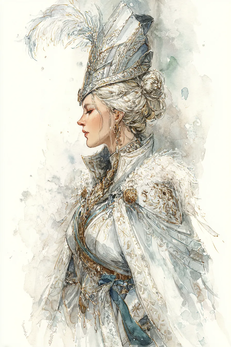 Lymyrian elves wear garments of shimmering fabrics woven with moon-thread and leaf-silver, often stiff with formality. Military attire blends ceremonial elegance with practicality: white-plated armour traced with fae runes, cloaks of enchanted silk, and tall helms crowned with feathered crests. Ordinary citizens wear fitted tunics of green and silver, with flowing sleeves and sharp, angular designs.Prominent Members