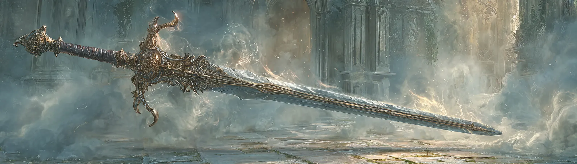 In hand, Truebound feels a whisper lighter than its size suggests, perfectly balanced to the point the mind stops noticing the weight. The grip is wrapped in dark eel-skin that never slicks, even in mist. The Amalthean shard brightens when crossings are near; specks of distant lightning skate inside it like minnows in glass. In some lights the blade shows faint way-marks etched along its fuller: not runes exactly, more like the shorthand of surveyors, the sort of marks you’d cut into a fallen tree to remind yourself which bend in the river you meant. Tap the flat with a nail and you hear an unhurried chime that seems to ripple through your bones and point the way your childhood house would lie if you started walking now. To set an anchor, the bearer plants the point into a firm surface in their own reality and breathes out until the blade’s tone steadies. As the resonance settles, a glassy, moon-silver silhouette of the sword remains in the place you set it - cool to the touch, immune to pry-bars, and humming at the edge of hearing - while you draw the true blade free. From that moment a traveller may step aside into reflection or rumour and always feel the thread of return to that afterimage. Set another anchor later and the first fades like mist in sunlight.