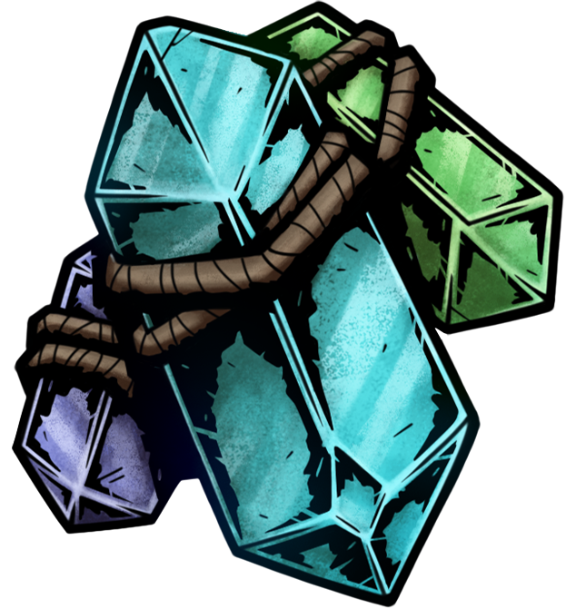 Shards of elderglass, bound in rope for ease of carrying upon the belt. Such fragments are favored by mercenaries and adventurers alike, kept close at hand should a moment of peril demand sudden fortitude.