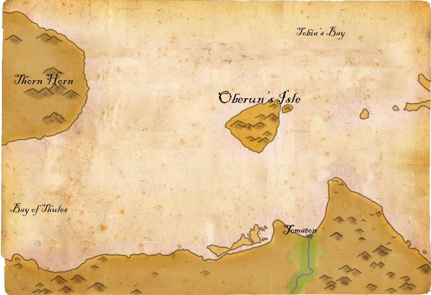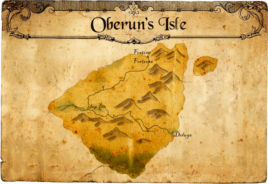 Oberun's Isle, known to the old world as Nur Baton, is an island in Tobia's Gulf north of the city of Tomaton on the Lhakamed coast. It is part of the kingdom of Toemanshire and defined in that kingdom's politics as the March of Festine. Largely uninhabited through the prehistory periods, the island was believed to be first colonized in the Kephic Age by the Benet civilizations, survivors of the Dragonfall, an event that, according to legend, destroyed the Areian Nations.