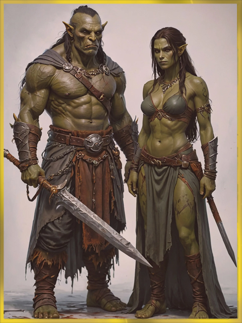 Orc history with the elves is as complicated a mess as one could imagine. While no modern elf would consider an orc one of their own, they have to admit that according to both people's history and mythology the first Scaro’are were accepted as elf, even carving out a new nation of their own ‘Mya Scaro Mair,' in the likeness of the lost Areian Nations. Over time, mix breeding and experimentation created generations far less elf-like and more ‘monstrous' orcs. On the other side, Orc tradition may admit to elven ancestry, but they see themselves as evolved beyond their weak kin. It is orc belief that they are the natural evolution of elves. A better, strong people to replace the flowery elves.