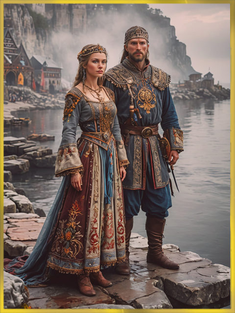 Their mountainous and coastal country means cooler weather in general, which means the Rosses often wear thicker clothing than their neighboring lands. Wool is the most common fabric. Blue is a cultural defining color in their garments. Their ancestors created a district color by heating their coastal sand, local limestone, and copper. Well documented in text as a unique color not found elsewhere in Novyum, the mixing method and exact color hue has been lost to history, leaving only the idea of blue as their cultural color for the Rosses people. Embroidery on clothing is a cultural heritage. Generations of Rosses slaves would embroider their undergarments to remember the old ways when they were stripped of their traditional clothing. This remains in the modern Rosses, with every piece of clothing having some embroidery on it. Women will often have flowery motifs, while men favor trees. Headdresses are common for both sexes to keep their long hair pulled back, out of their face.