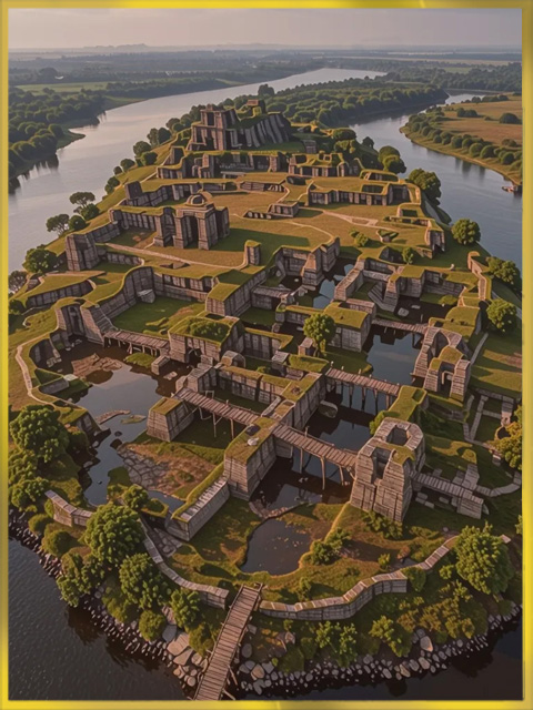 Sitting on an artificial island in the middle of the Redhand River, about 25 miles upriver from Tomaton, the ruins of Thapoddo, capital of the lost Elf kingdom of Zalpula, can still be seen to the modern day. That said, not much of this city remains after over three thousand years of history. Elven archeologists cleared the site in the early Novyum Age, rebuilding its roads and clearing the muck and rubble from the building foundations. Much of what is found today are newer stones laid during these elves' efforts to mimic the old structures bases and locations.Founded in 3534sc, and named for Thapon a Soun'are hero from the ancient nation of Zapula, the city is said to be built on the site of a battle between elven warriors and Anthealglas the Ever Hungry. Thapon and his father Enzero died at the site driving off the Dragon. Akavia, Enzero's sister built the city on the site in honor of Thapon, hailing him the hero of Zalpula and savoir of his people. Though lost to history, legends are that a great bronze statue of Thapon entangled with Anthealglas in battle once towered over the city and riverlands.