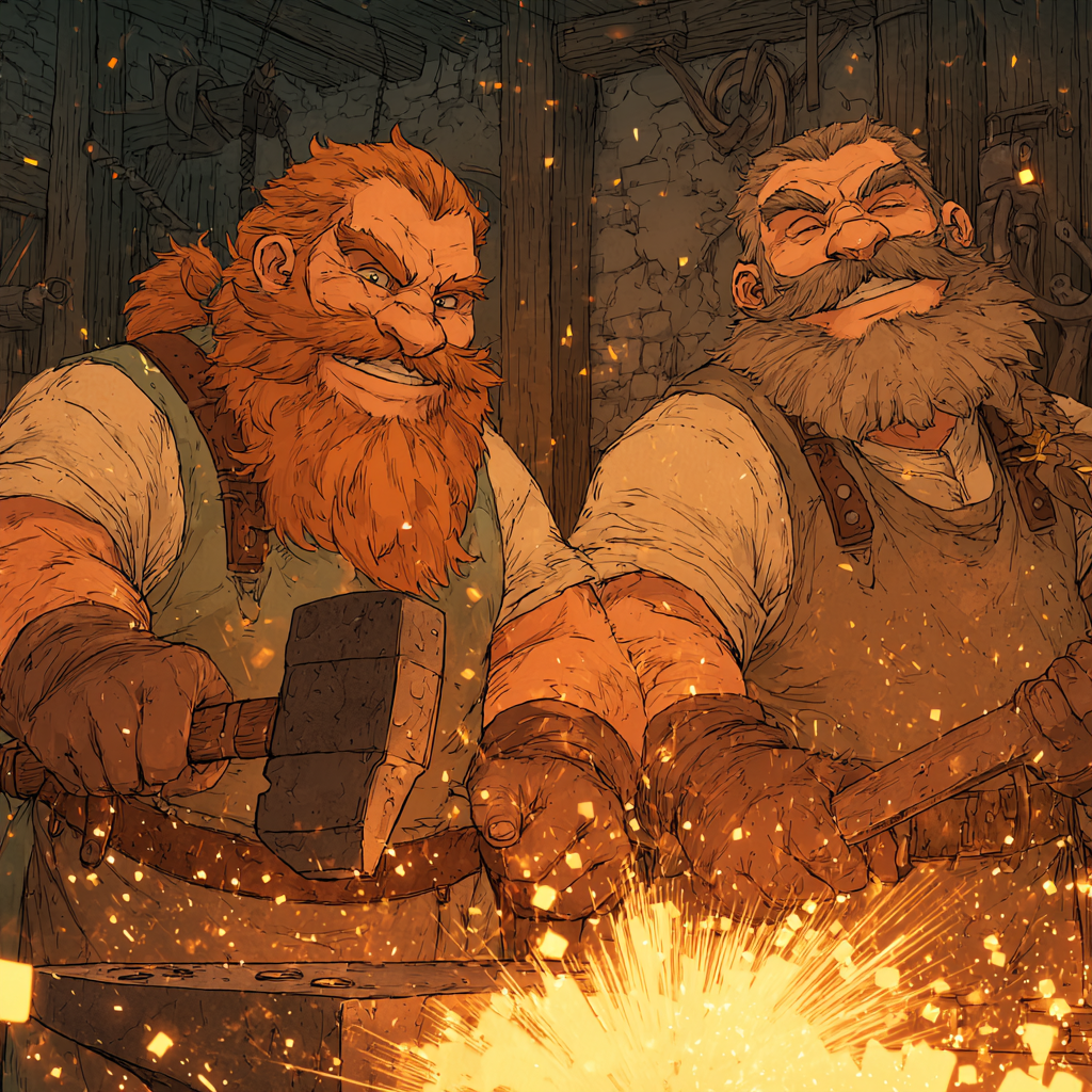 Darrik brings the spark of innovation to the family craft. Where Torvin shapes the steel, Darrik etches it with runes that harden plates, lighten chain, or even absorb magical blows. Slightly leaner than his brother, with a shorter, neater ginger beard and runes tattooed across his forearms, Darrik is the face of the shop when it comes to customer charm. He’s quick with a grin, loves talking up the finer points of rune-smithing, and isn’t above showing off his work with a flourish of glowing sigils. While Torvin ensures the armor will last a lifetime, Darrik ensures it will thrive in battle. Personality: Witty, ambitious, and a bit more modern-minded than Torvin. Enjoys experimenting with new rune-patterns, sometimes to the frustration of his cautious brother. Quirks: Has a habit of doodling rune sketches on scraps of parchment — or tavern tables. Wears enchanted bracers of his own design. Keeps a lucky copper coin etched with the first rune he ever carved.