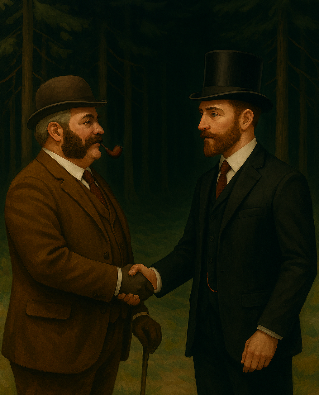 “Ah, Dr. Rolfo! There you are! I was told you arrived recently, and I thought I should be the one to greet you first – not the forest!” boomed the stout man toward the slender one. The addressed turned and removed his top hat with a slight bow. “Delighted, Mr. Balei. I didn’t expect you to personally take part in the expedition.”